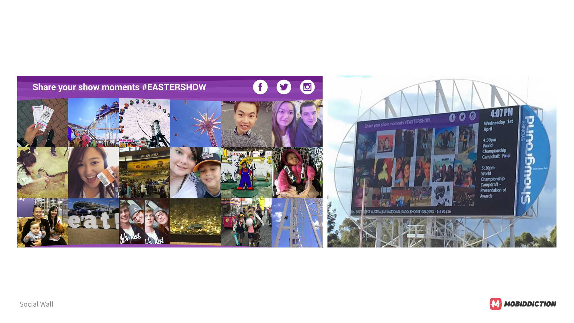 We made the app Social & Shareable by providing a Gallery function which allowed customers to take photos while at the event and post them to the Easter Show Social wall, making the photo visible on the large Spotless Stadium screen, screens around the venue, Easter Show website, Easter Show Facebook page and the customers own Social Wall.