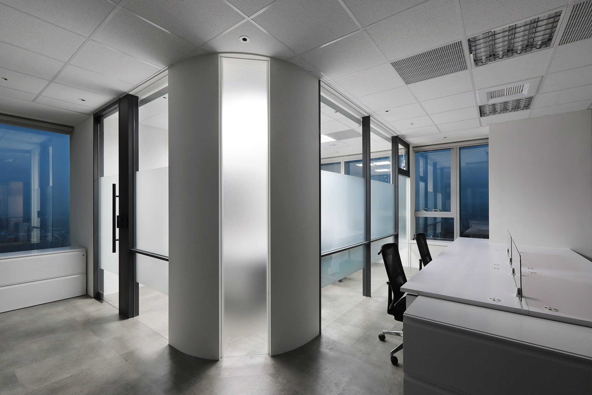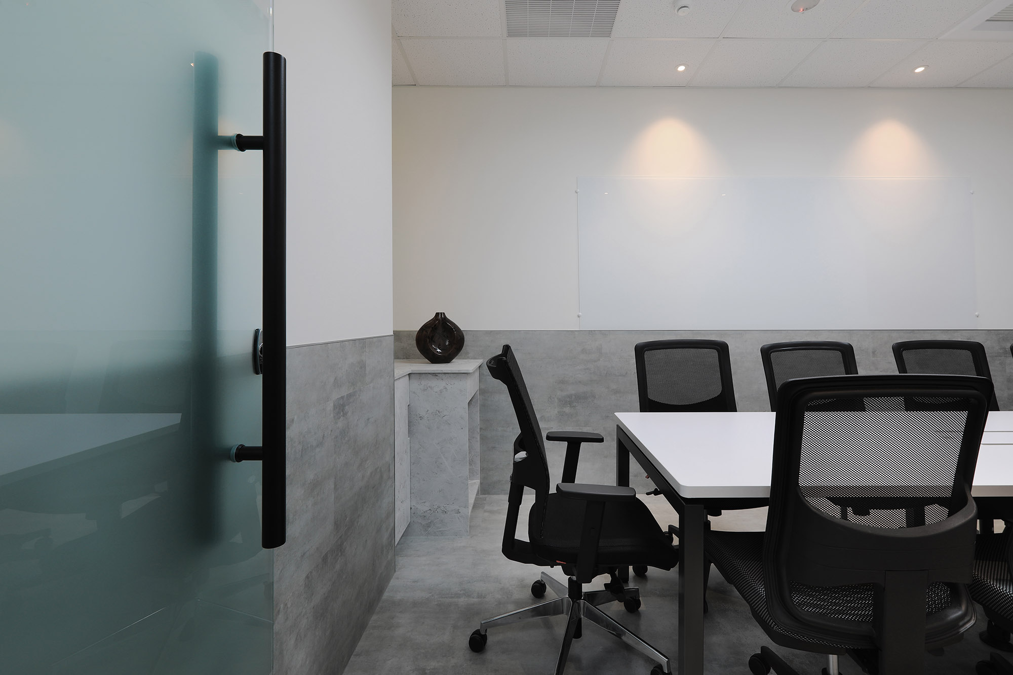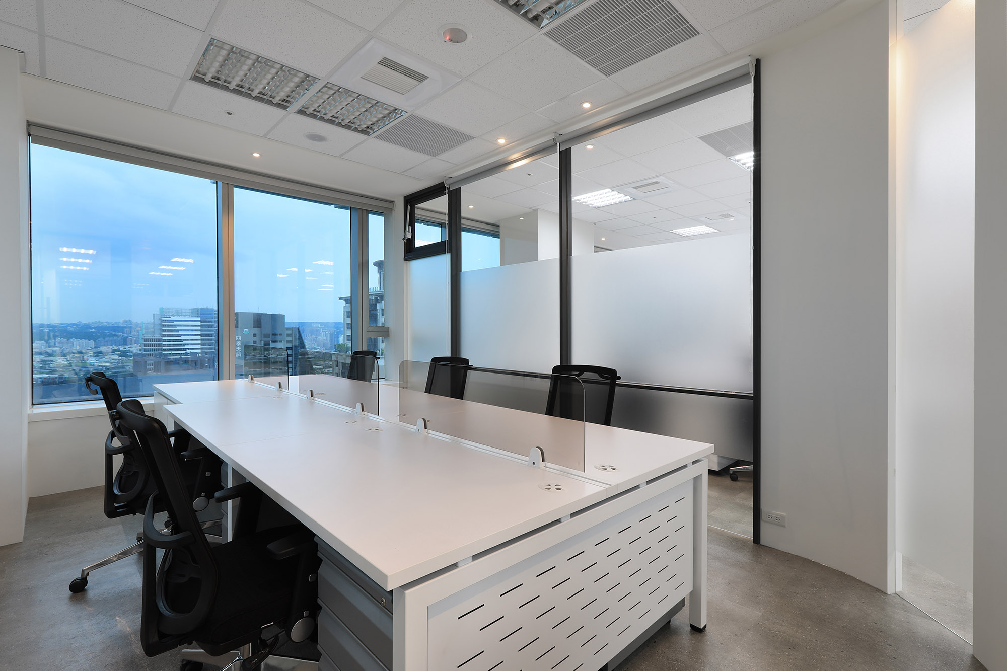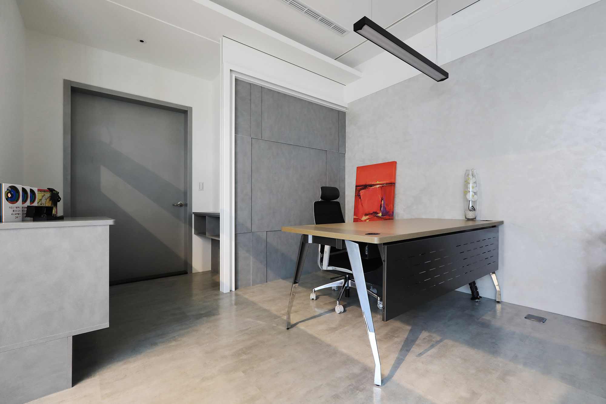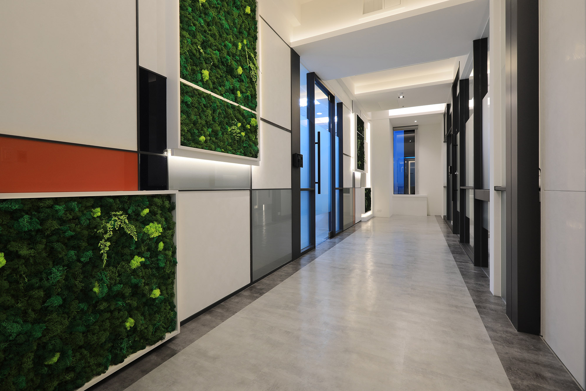 Special eco-friendly paint is selected for the foyer and the supervisor’s office, while the grey walls in the supervisor’s office further adopted systematic panels to proceed with the segmentation design. The tea room applied a large area of white eco-friendly paint and power-saving LED lights and shadow design as compared to the grey eco-friendly systematic cabinets, allowing the space to demonstrate succinct but powerful clear silhouettes and strong visual contrast. The office area kept the advantage of the original building with natural lighting on three sides, utilizing iron pieces and glass for the partition design to allow for sufficient lighting, offering adequate vision even when the lights are turned off, thereby benefiting in energy-saving and power-saving on a long-term basis to reduce unnecessary waste of resources.