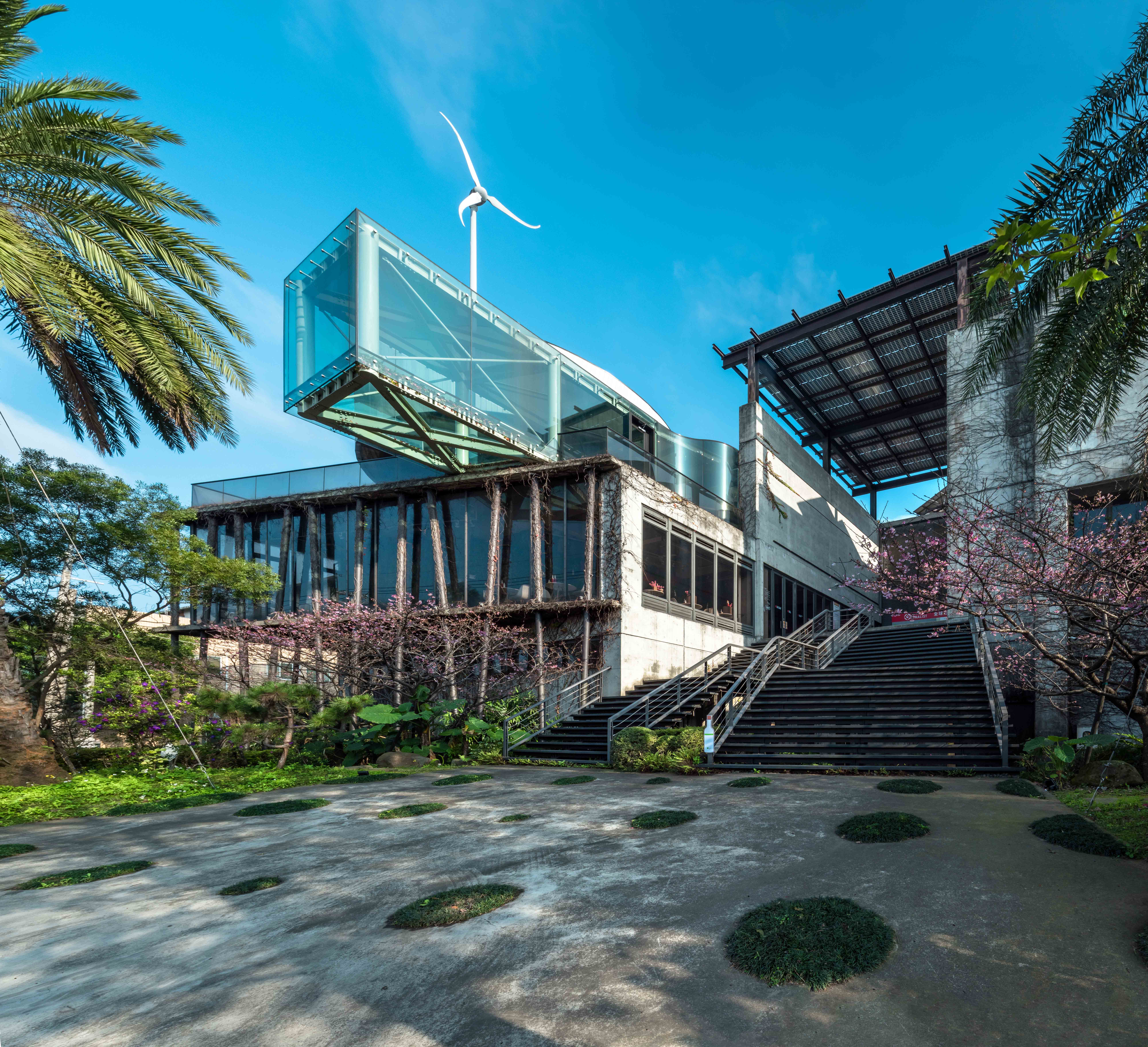In response to ecological sustainability, the design and selection of materials in this project are based on the eco-friendly, allowing the building to breathe naturally as if it were life and interdependence with the ecological environment. The designer integrates the production system, clean energy, solar photovoltaic system, wind power system, and energy efficiency management system in the building to create the best ecological green grid for the environment under the eco-friendly concept. In addition, the designer also uses a rainwater recycling system, waterfall cooling system, hillside soil and water conservation, sewage purification treatment, air conditioning, and lighting design, architectural concrete, and ecological pond to extend the life of the building and further integrate the building with the nature.