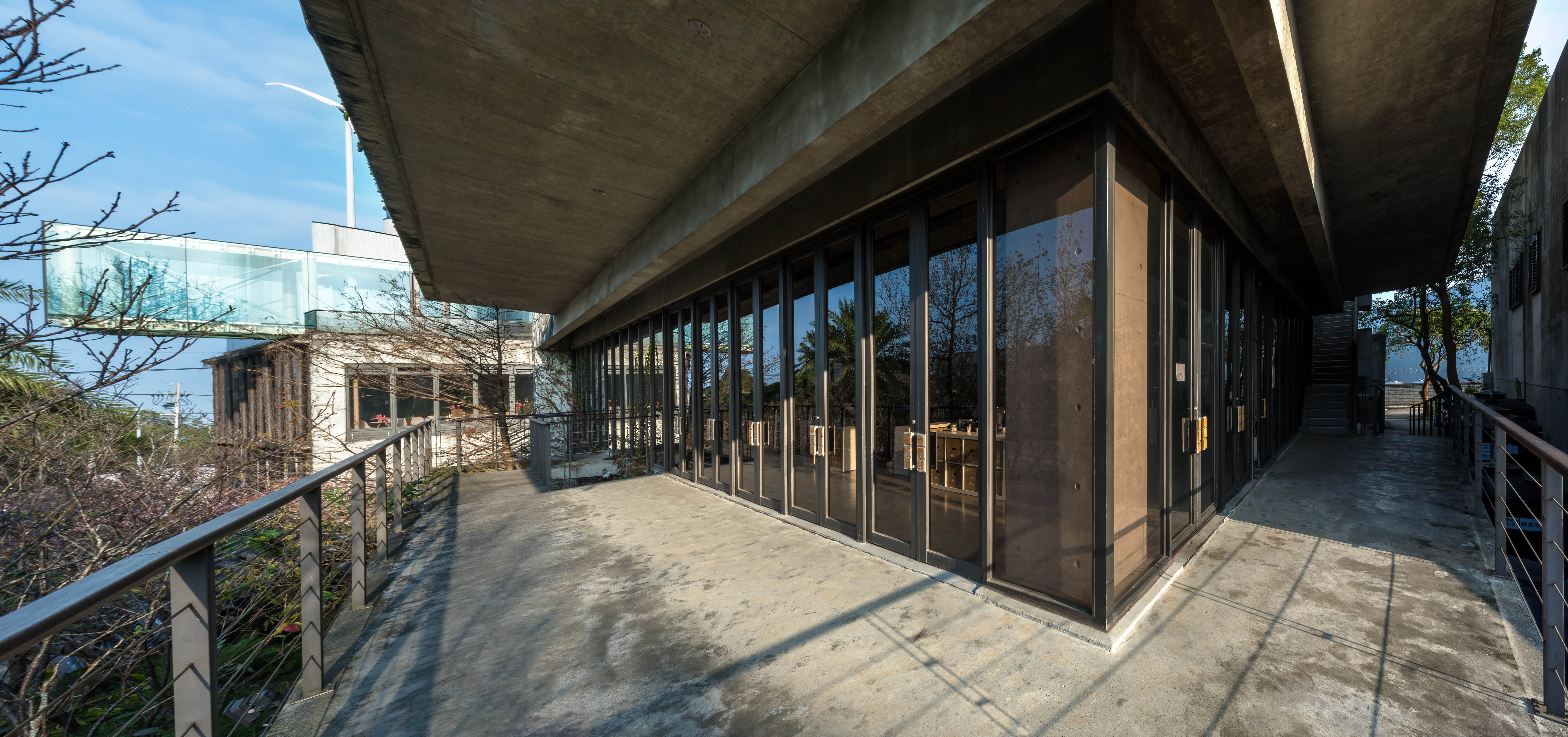 The designers faced a huge challenge in this project with the high carbon emission reinforced concrete structure and the thermal environment of the glass room. Given the impact of hillside development on the environment, the designer uses a low-impact design approach to integrate human and ecological interaction in this building.