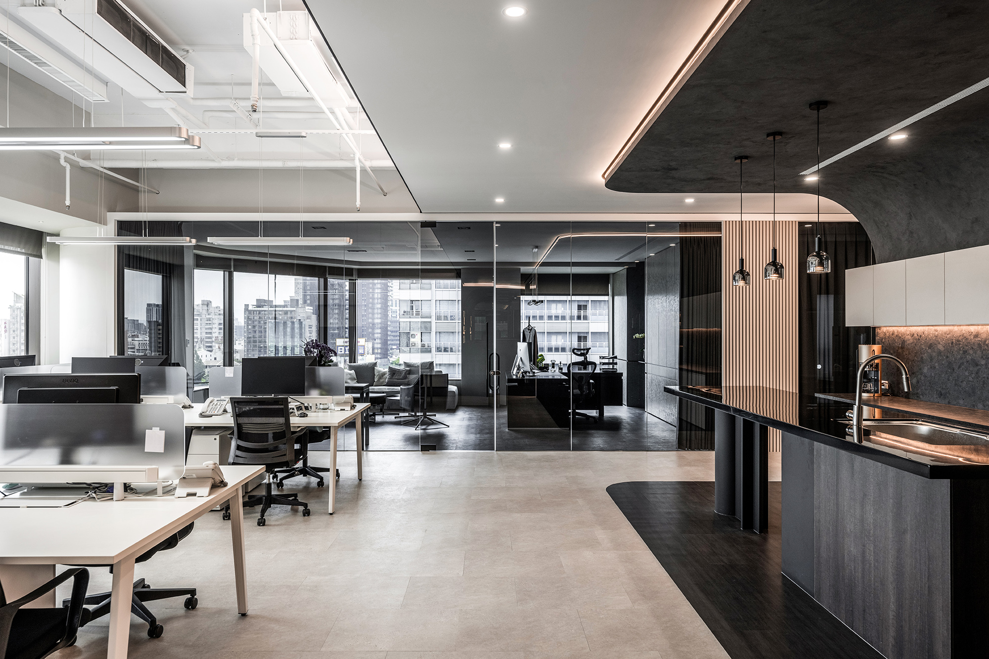 Through use of glass panels, a smooth flow design, and black-white palettes, the designer interprets the law firm’s core value of “transparency, openness, preciseness, and professionalism.” The curved and round elements applied in the work space planted wishes for each case to be well rounded off, as well as hoping the colleagues to be united together. When natural lighting travels, shining on the grains of wooden textures, users can get to enjoy the working environment with both its comfortable fluidity and practicality.