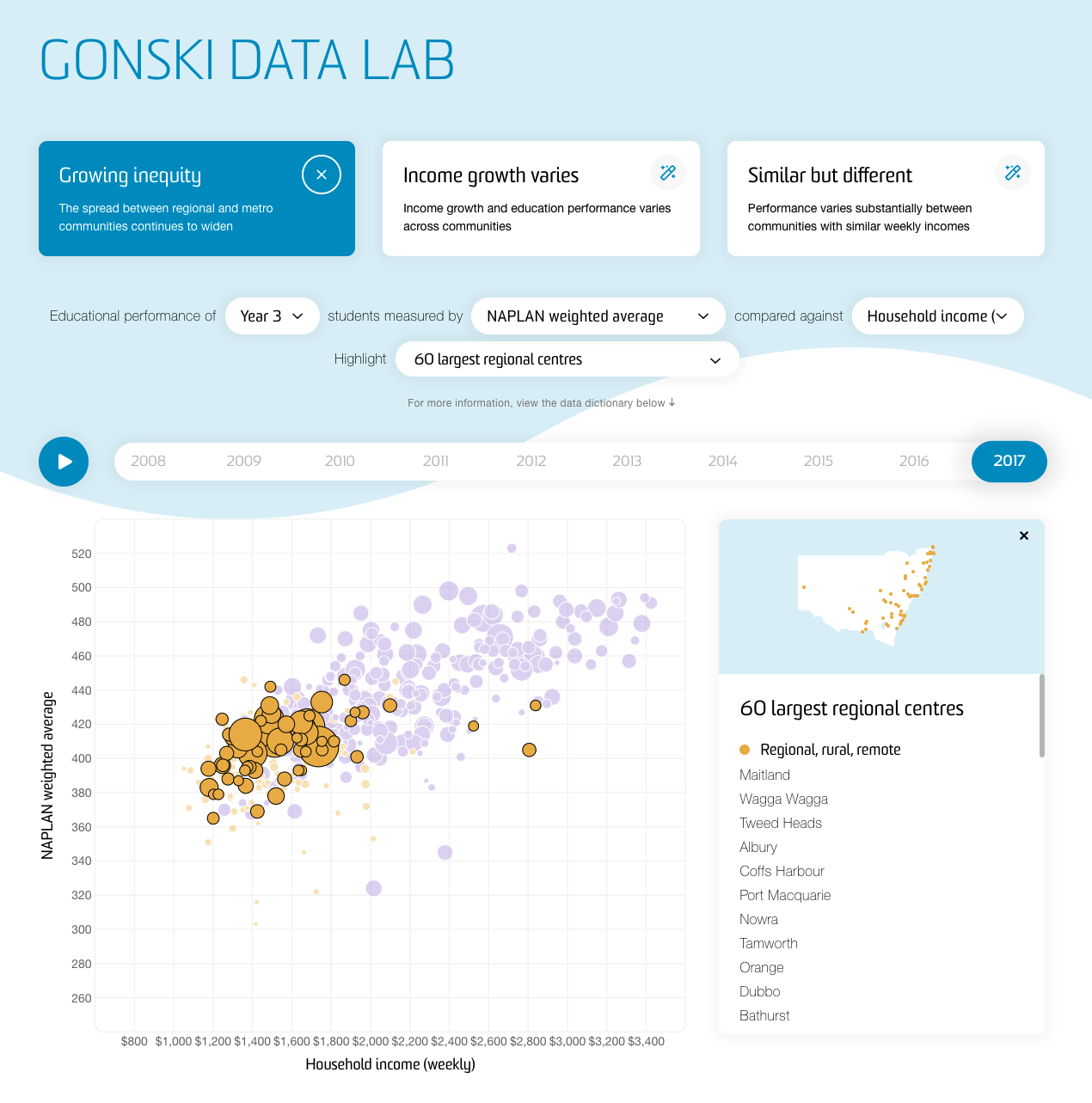 This is a live and publicly accessible project, based on public data. You can find it at gonskidatalab.com.au.