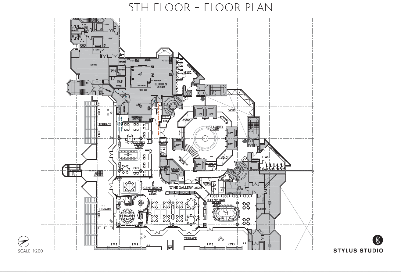 The race is finished and victory in hand, high ceiling (fibre optic) lights, retractable TVs, and Cloisanne fireplaces were used to present the idea open space and elegance. The fireplace also doubles as a window that connects to the Kat O Bar, a large perforation allows visitors to peer through the two venues.