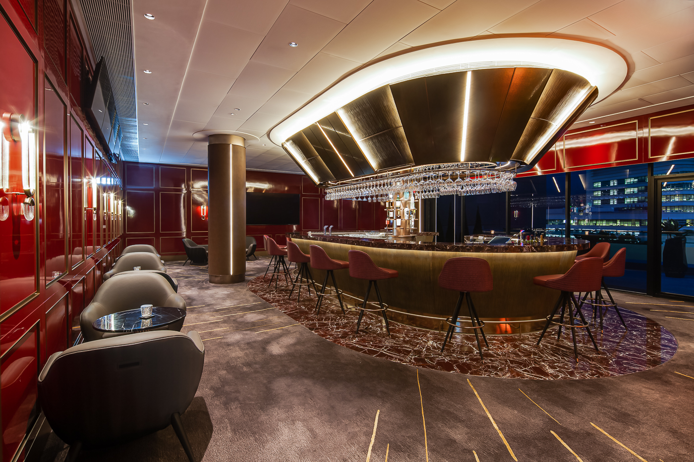 Its ‘RED’ theme has been designed to capture the most passionate moment of the race; a crownlike ceiling feature mimics the racetrack and provides a sense of infinite anticipation and excitement.