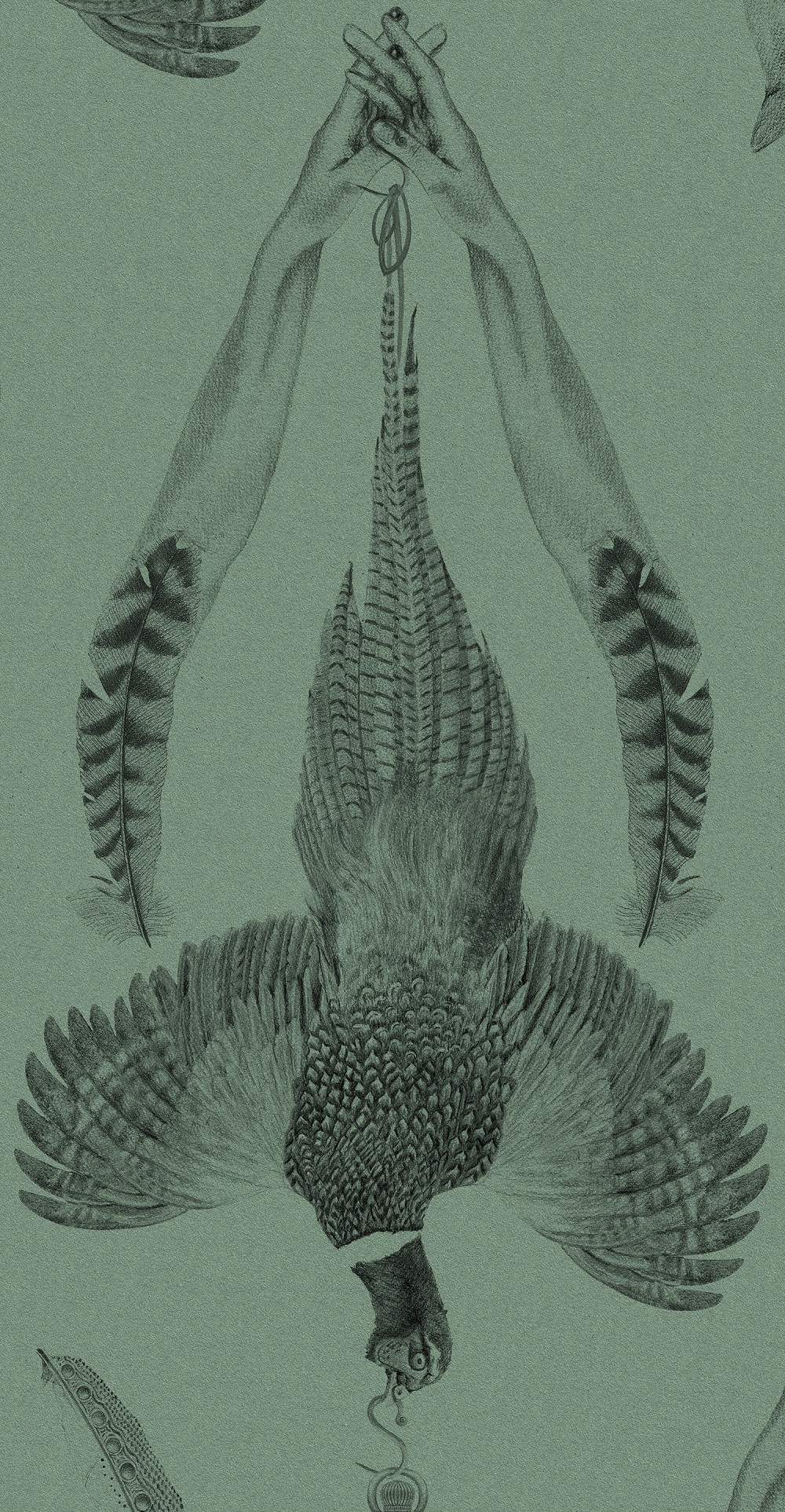 We wanted a surreal take on beautiful hanging pheasants - hunting with pearls and framed by the most feminine arms and legs.