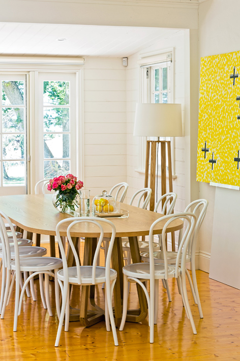 The selection of furniture was tailored to compliment the honesty, purity and simplicity of the interior of the house. The use of mix and match contemporary and classic modern furniture create a playful warm decor to the larger main rooms.