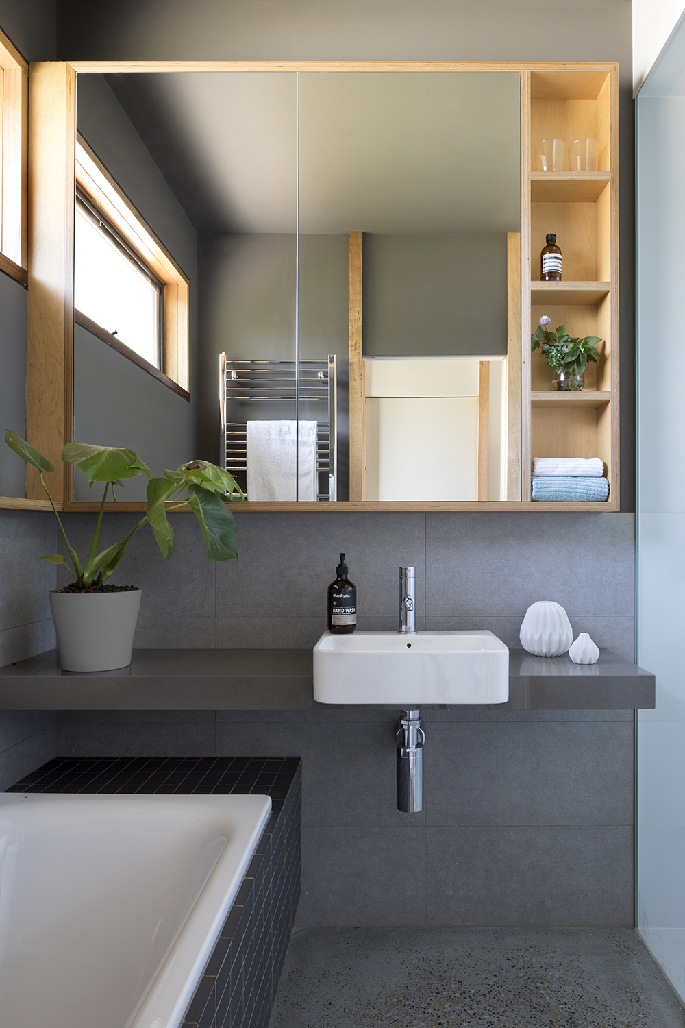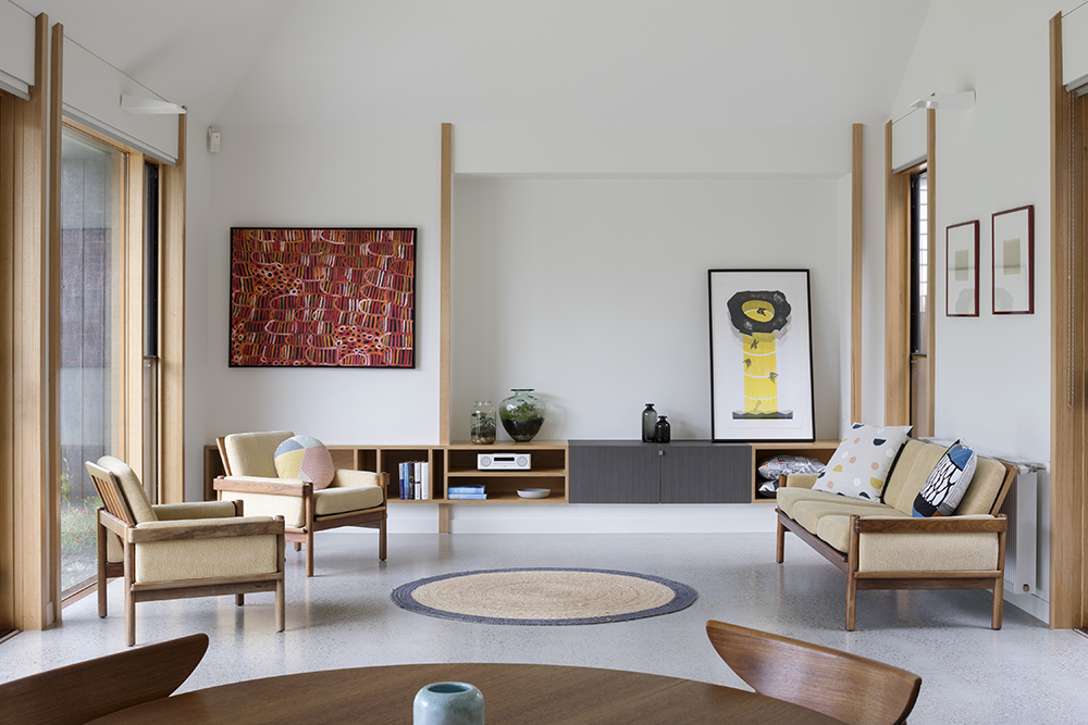 As the client is studying part time whilst raising a child, they needed a space that they could retreat to whist retaining a connection with the living spaces. A courtyard was incorporated into the design to create a buffer between active and quiet spaces and allow northern light to penetrate deeper into the house. The study is physically separated from the living area but offers direct views to the living area through the courtyard, thereby facilitating passive observation of living area activity.