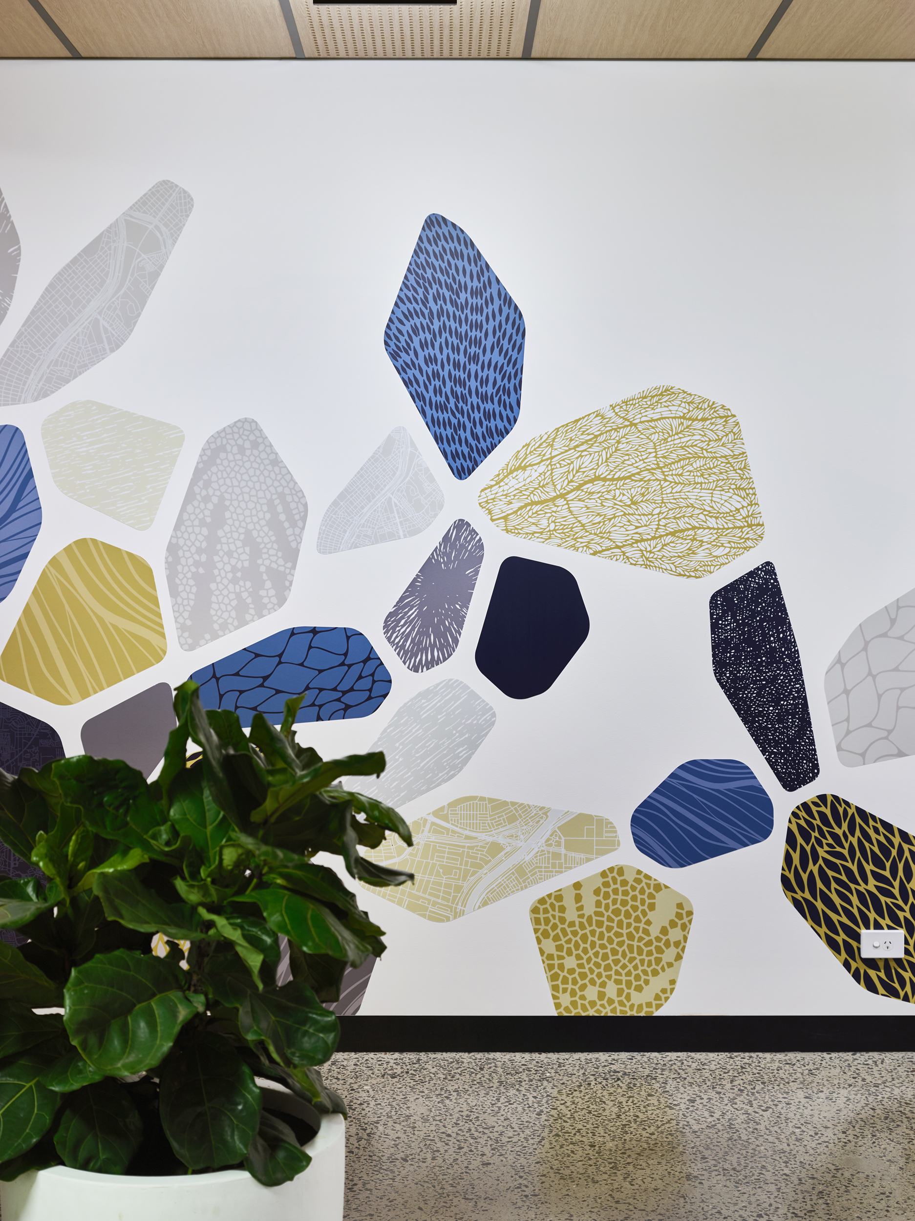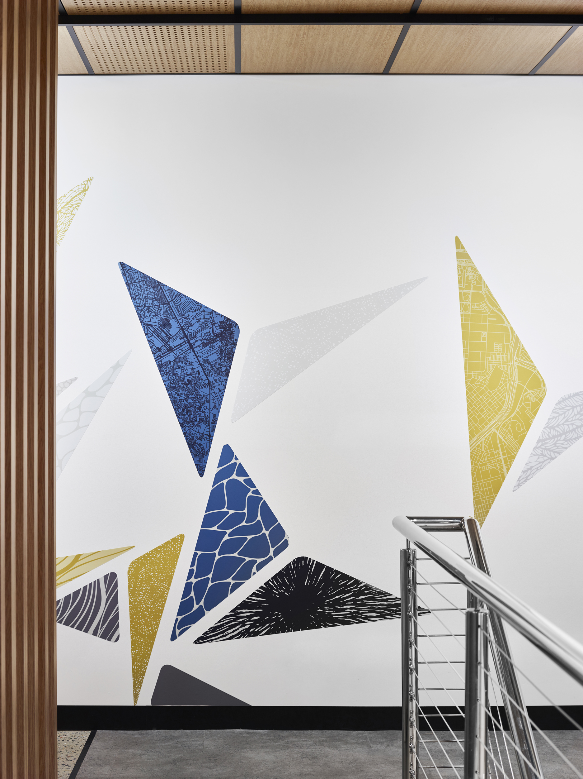 'Emerge' was the overarching theme, presented in well placed, evocative graphics, that take the user on a journey. Across three floors the graphics assist wayfinding, through placement and the use of distinct geometric shapes giving an identity to each floor.