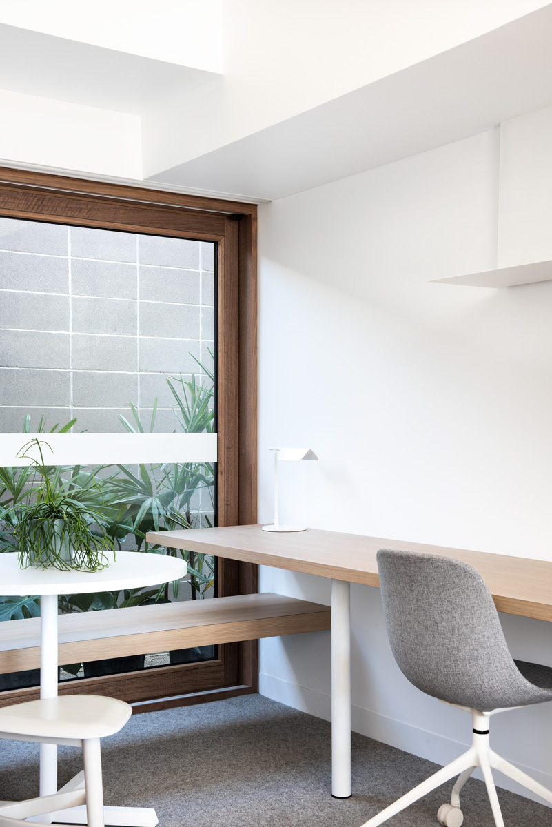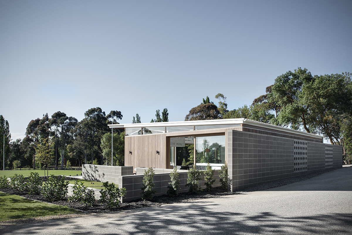 The conversion to the cricket pavilion has been designed with primary consideration toward maintaining and enhancing its existing relationship with the cricket oval and surrounding landscape while improving natural light and adaptive programming. The design introduces two large openings to create a Southeast central circulation axis reinforcing the buildings’ aspect to the cricket oval. By maintaining and updating the covered outdoor setting to the Southeast this aspect is further enhanced. Redefining the façade with timber battens assists in blending the building into the landscape. Rather than conceal the buildings original form, the positioning of these battens follows the height of existing brickwork to maintain the pavilions’ distinct roof form gesturing toward the oval. The introduction of larger openings combined with an open floor plan supports cross ventilation while allowing for future flexibility of programme.