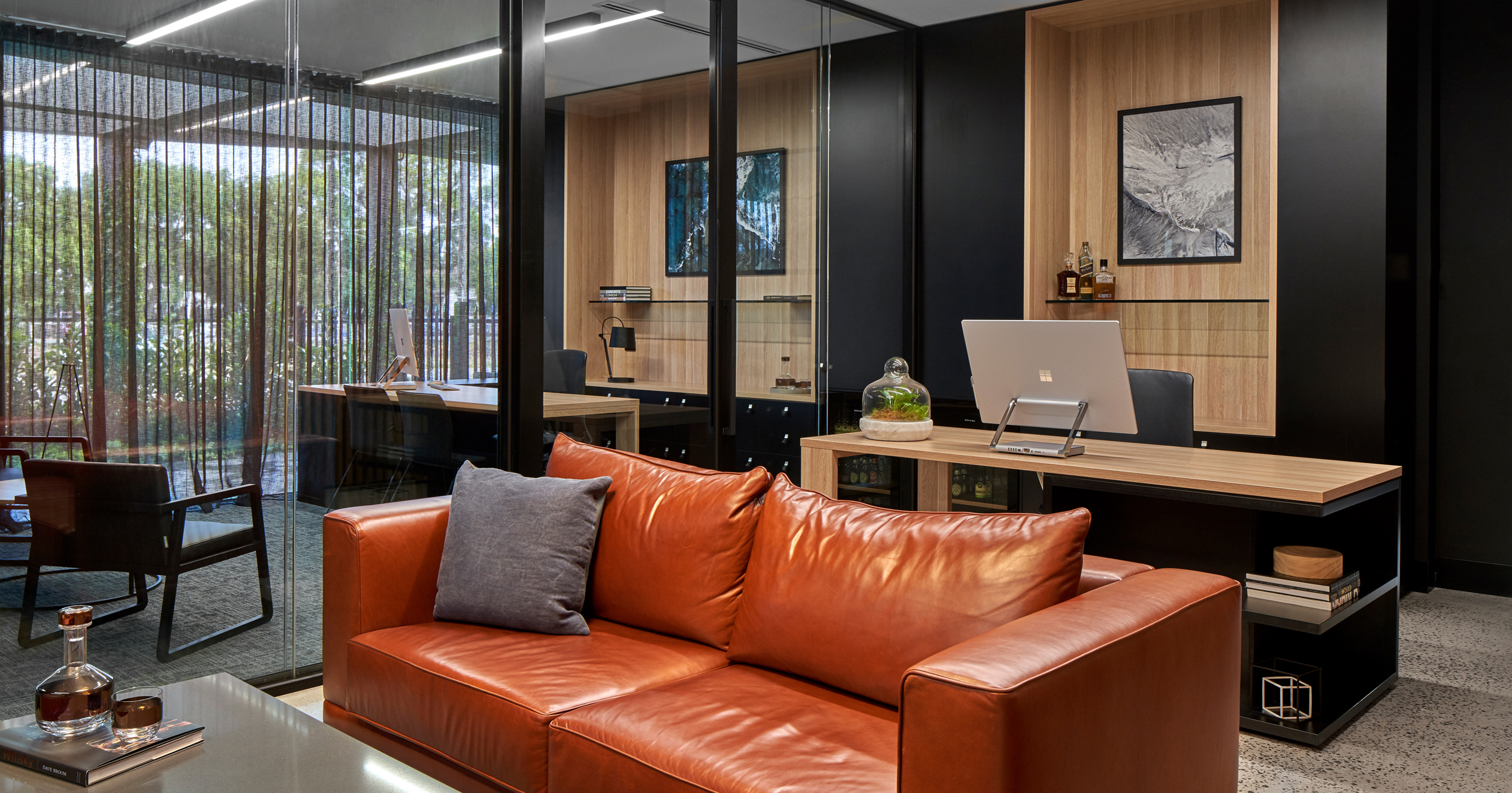 The designed workplace uses locally sourced materials that compliment the fitout, as this not only benefits our local industry, but also reduces the carbon footprint of the goods being delivered to site.