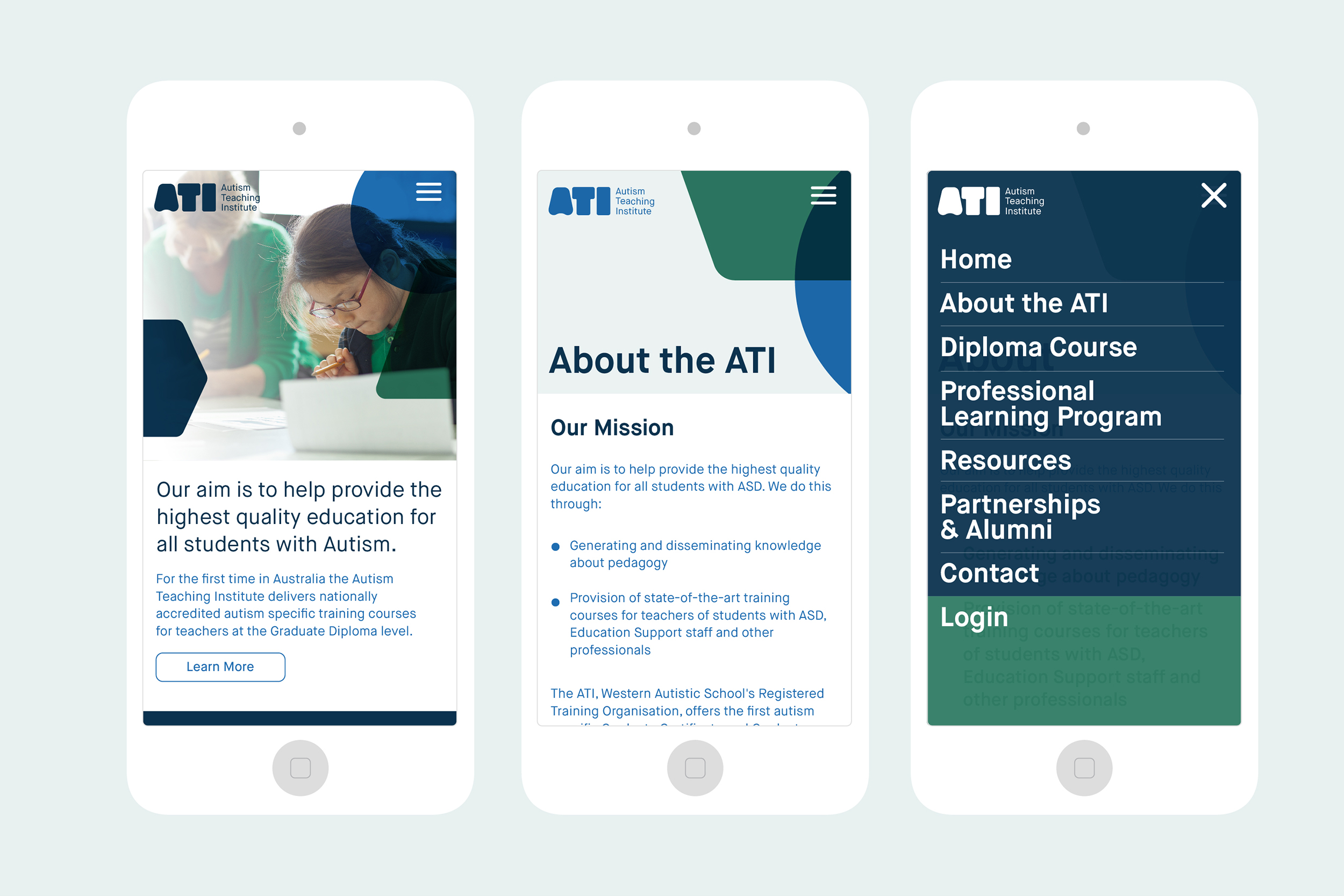 In our ongoing collaboration with the Western Autistic School we also conducted a rebrand of their teacher training initiative, the Autism Teaching Institute (ATI), an exciting cutting edge initiative that has broken new ground in the fields of School Education, Teacher Training provision and Vocational Training in Australia. Responding to the need of more teachers qualified to handle the special needs of children living with Autism, ATI provides state-of-the-art training courses for teachers, school leaders, and other professionals.