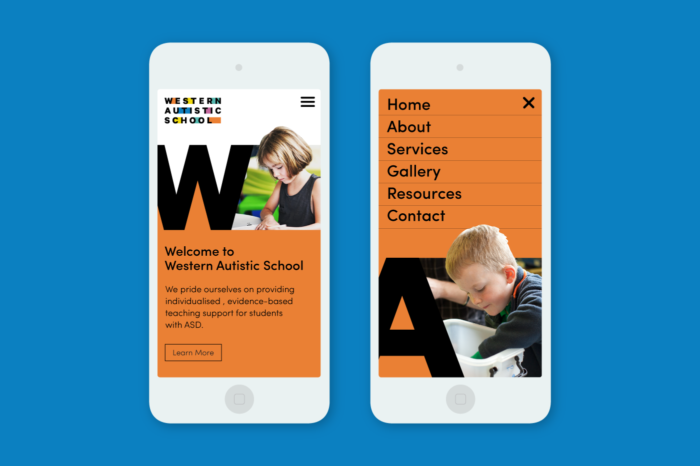 With an out dated brand and website design, both organisations felt that their visual identities did not sufficiently inspire parents or teachers of children with ASD to engage in their innovative learning and teaching programs. The rebranding exercise visually expressed the WAS' position in the Victorian education system as "filling the gaps" symbolised by vibrant colour blocking absorbing the space between the letterforms of the bold typography.