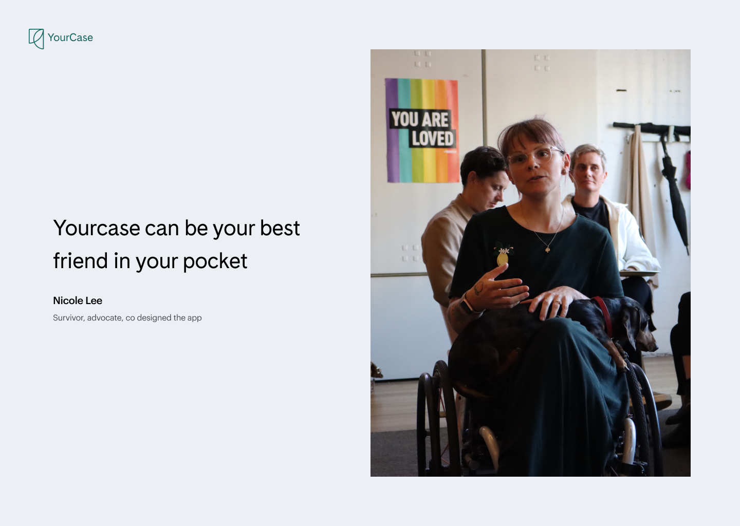 YourCase’s development featured partners that include Victoria Police, the Public Sector Innovation Fund, Berry Street, Family Safety Victoria, the Sir Zelman Cowen Centre, and the Federal Department of Social Services. His Honour Peter Lauritsen, Chief Magistrate of Victoria, lent his support to our exploration to improve court events around family violence intervention order cases. The Victim Survivors' Advisory Council was also engaged as a partner to provide the voice of victim-survivors throughout the design process, including Nicole Lee who is featured in the case study video for YourCase (https://youtu.be/ZrFqlGZsNYI). The product has gained widespread support across the sector.