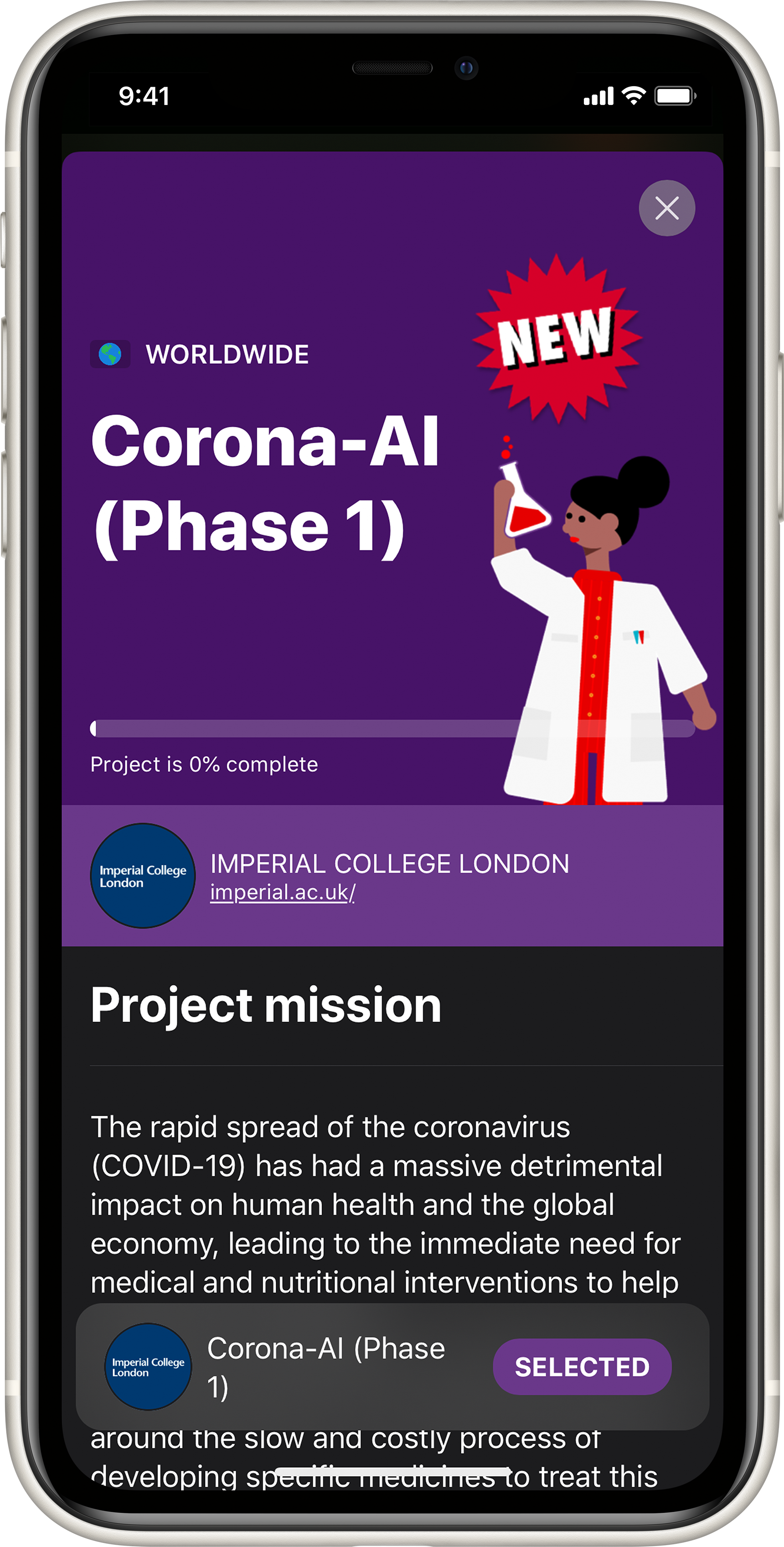 An update to this award-winning mobile app in April 2020 now enables users to once again crunch medical research data for Imperial College London, only this time its to better understand COVID-19.