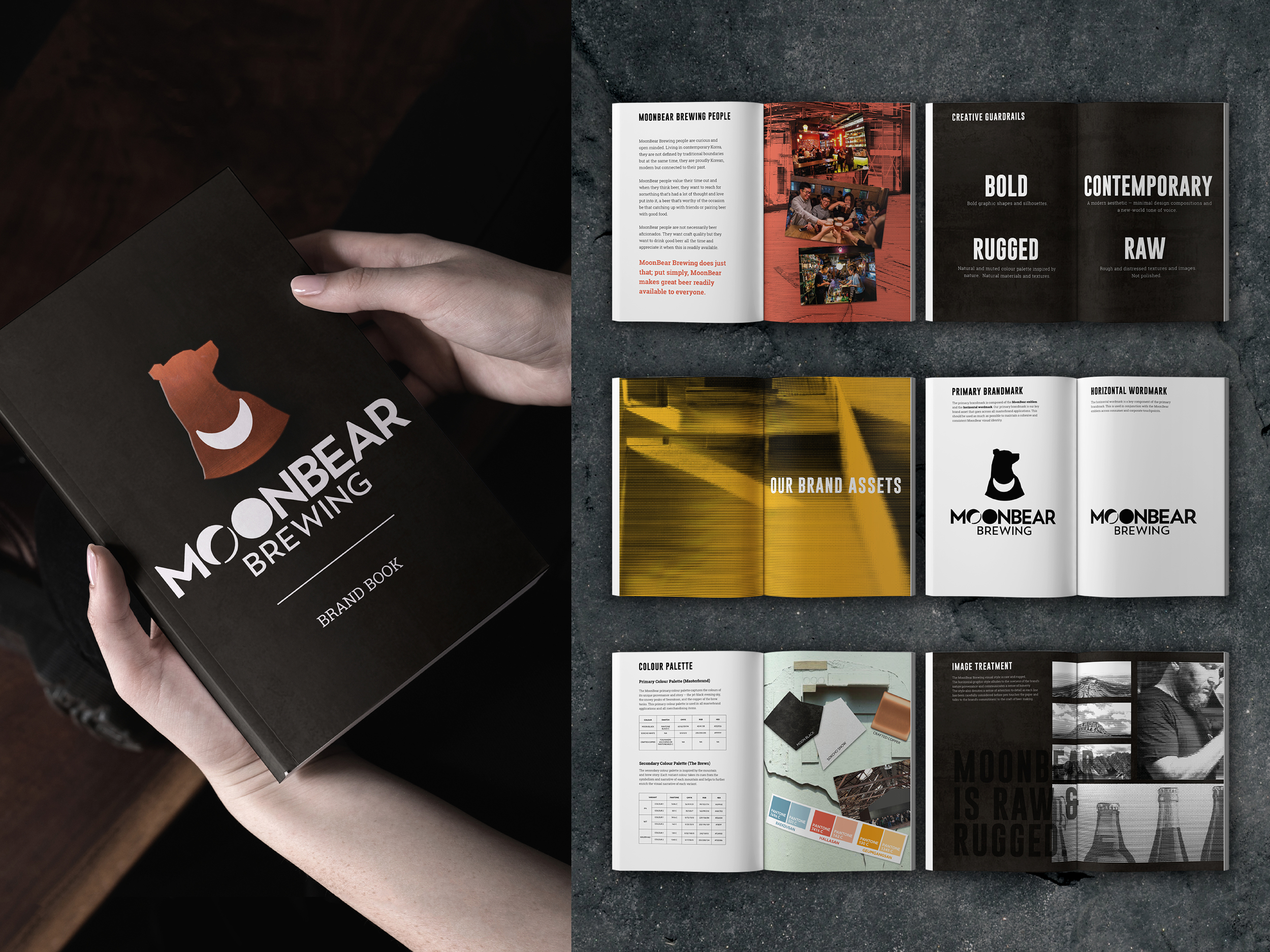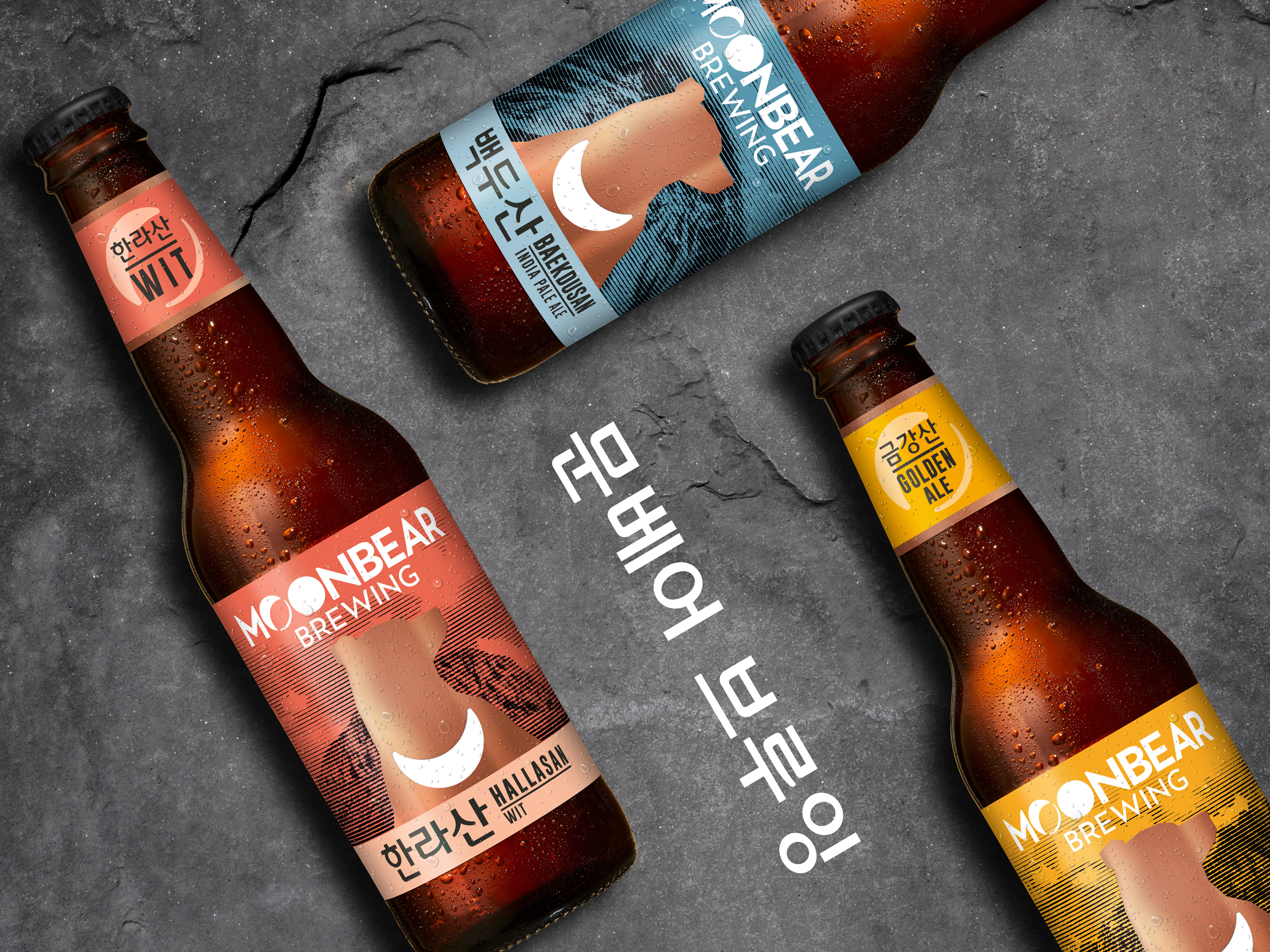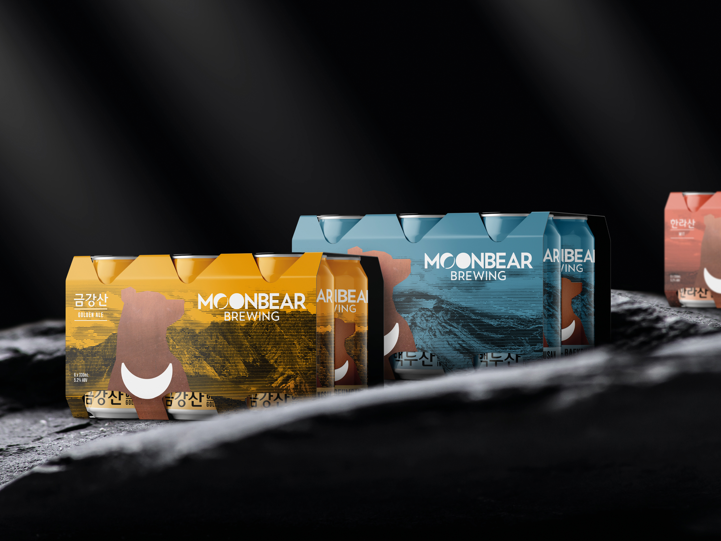 Inspired by the beauty of the natural landscape, The Edison Agency shaped a design system and visual language that reimagines craft beer through the cultural lens of the distinctly Korean provenance and the global spirit of its founders. MoonBear Brewing is the newest craft brewery in Korea born from a pioneering spirit, grit, and determination. Being a heroic and powerful mountain totem, the moon bear is the brand’s visual symbol – made iconic by the crescent moon on its chest. The moon bear is also a strong cultural symbol of Korea and its majestic statue marks the entrance to the Seoraksan National Park – not far from the home of the brewery. Utilising both the strength and mysticism of the local Korean mountains — Hallasan, Baekdusan and Geumgangsan — the first series of brews have been crafted to compliment contemporary Korean food with an aesthetic underpinned by the natural texture and diversity of the brewery’s people and region.