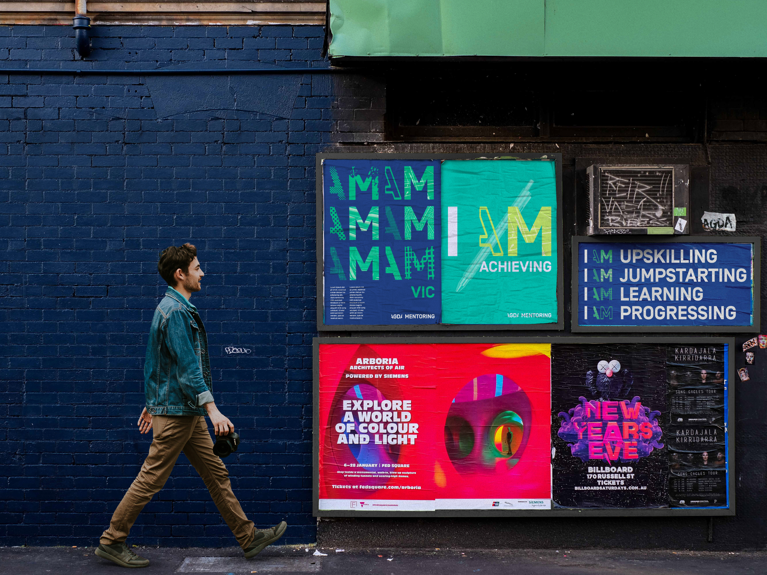 The AGDA Mentorship Design System is a reflection of a broader social narrative - the deep human desire to belong and to feel connected. The design language celebrates diversity and momentum through a fresh and bold design aesthetic. This system was only recently implemented in early 2019 and will continue to evolve and adapt itself across all communication touch-points in Victoria with a vision for implementation on a national level in coming years.