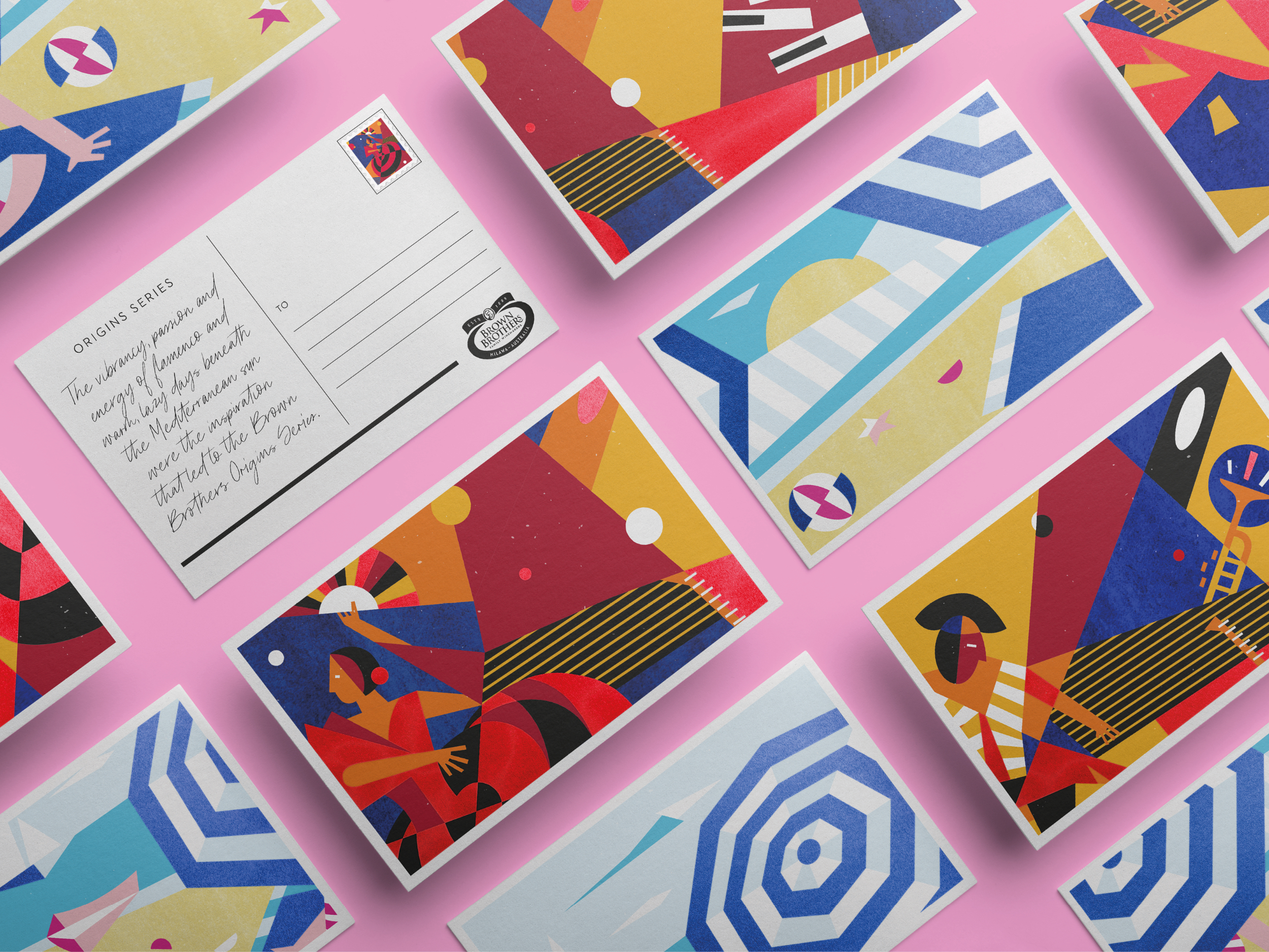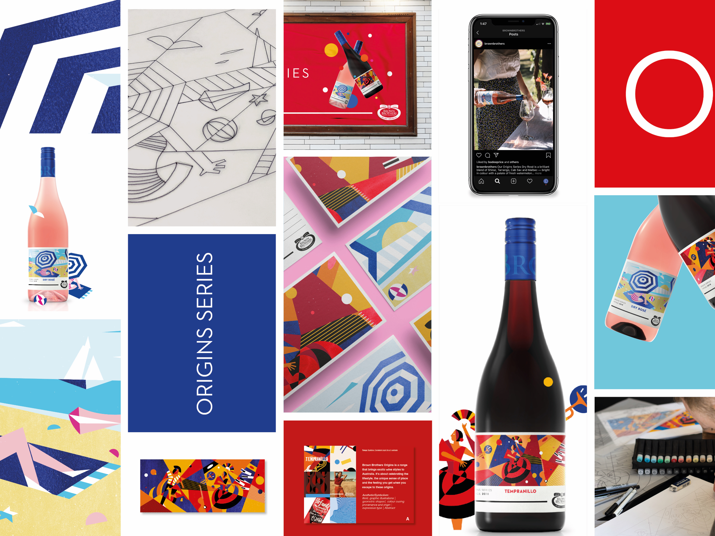 Our work identified a strategic opportunity to own the “Origin” of the varietal through a distinctive, colourful and evocative illustration style. This was a project of love - our distinctive and playful illustration style was hand-crafted by one of our resident Edison illustrators. The vibrancy of the varietals country-of-origin is captured in an approachable and down-to-earth Cubist-Inspired aesthetic. In keeping with the attitude and personality of the Brown Brothers brand - this range captures the spirit of the Mediterranean, French and Spanish icons in a familiar way - rejecting the traditional status codes of stuffy old-world wines.