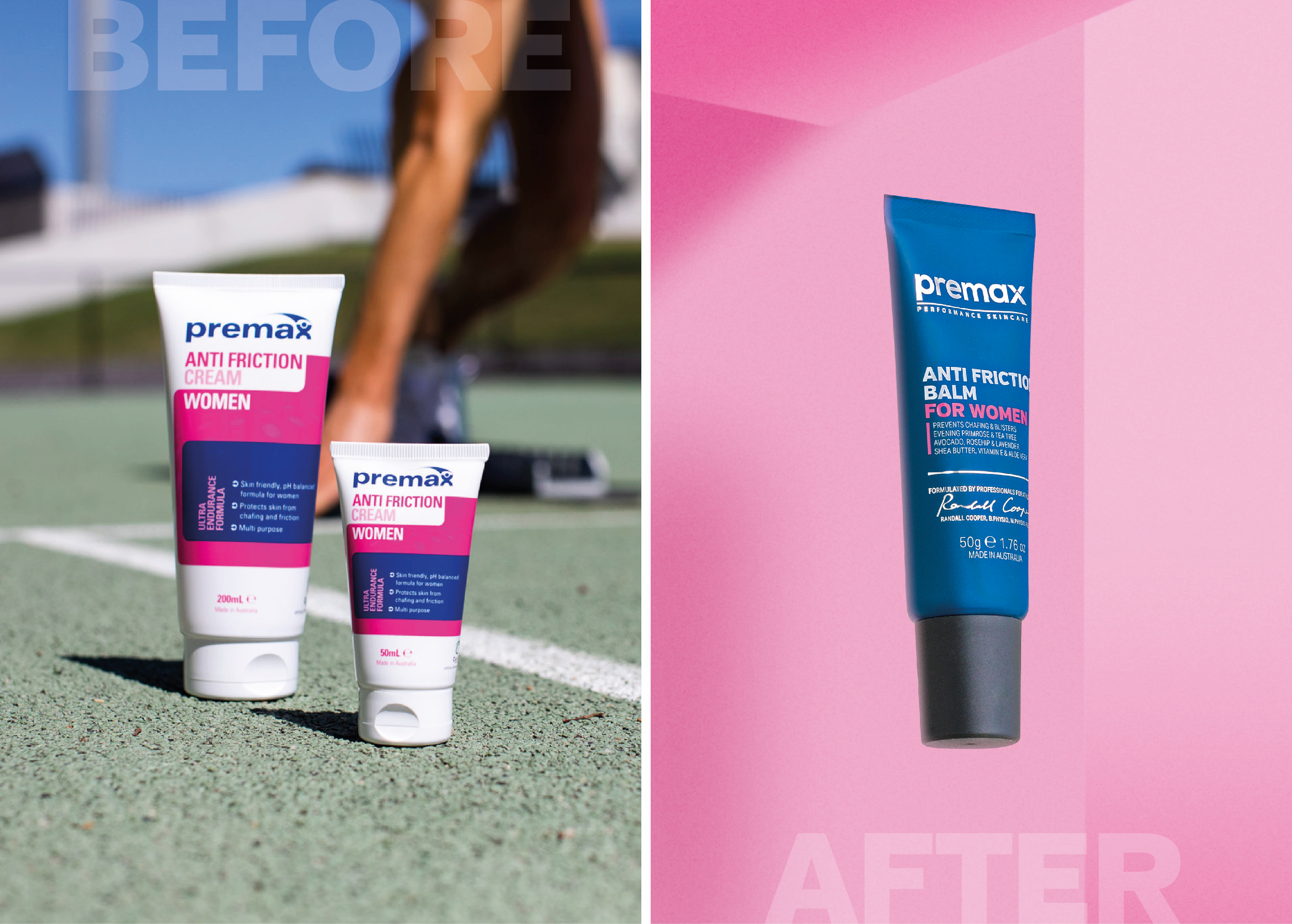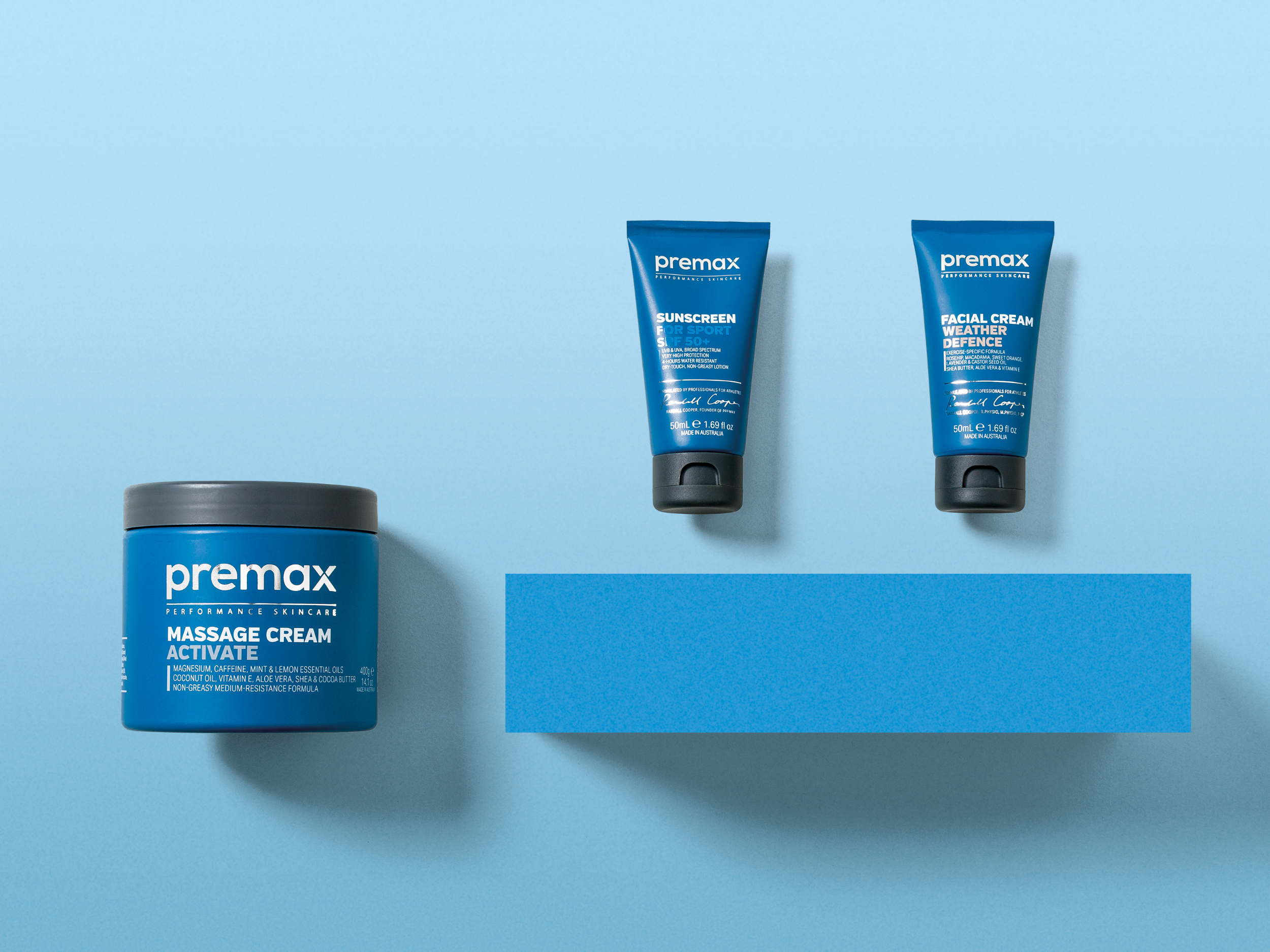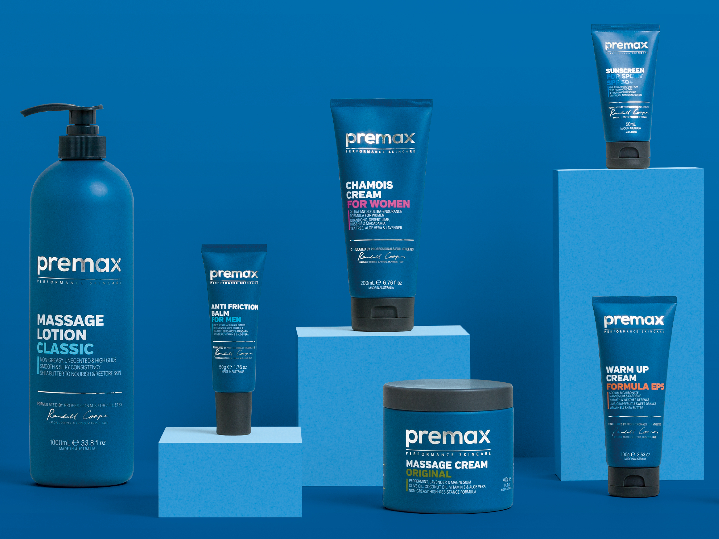 Premax is a sports skincare company founded by renowned sports physiotherapist Randall Cooper, and is the preferred massage cream brand of most elite sporting teams in Australia. Premax’s primary sales channel is online, with a focus on Western markets where sports skincare is an emerging category with huge growth opportunity, but no established category cues.