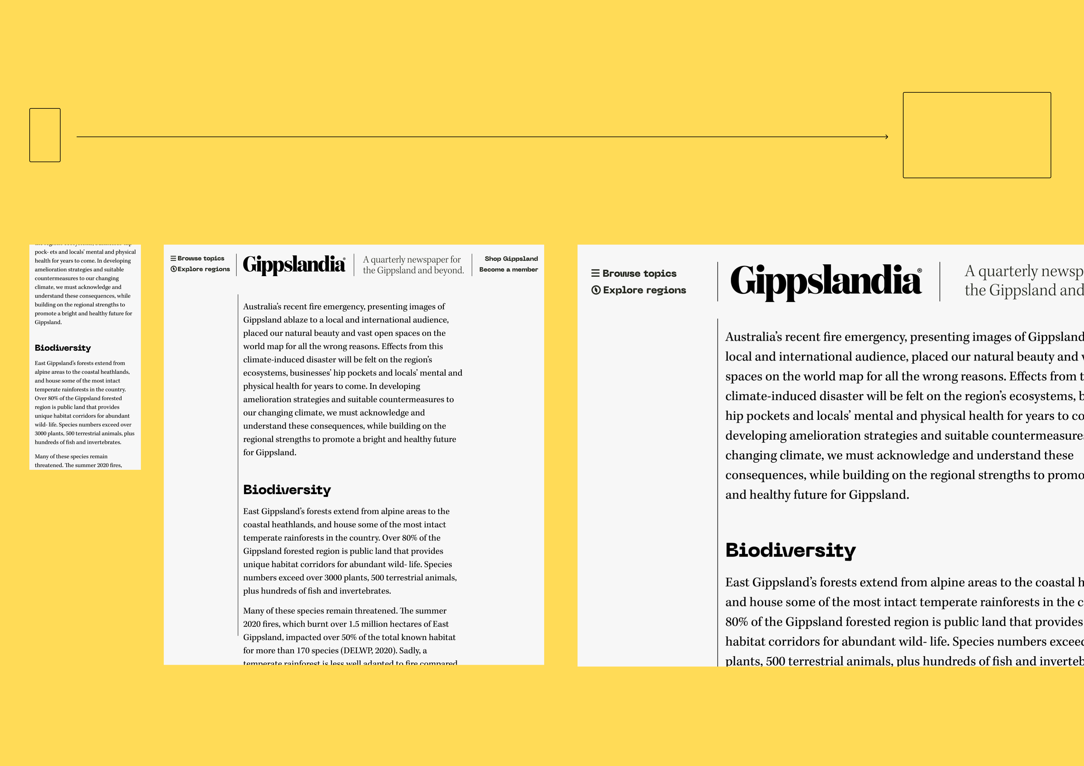 Our approach was to work collaboratively with the Gippslandia editorial team—who were well-versed in print publishing, content development, and design—to define a vision for the new website.