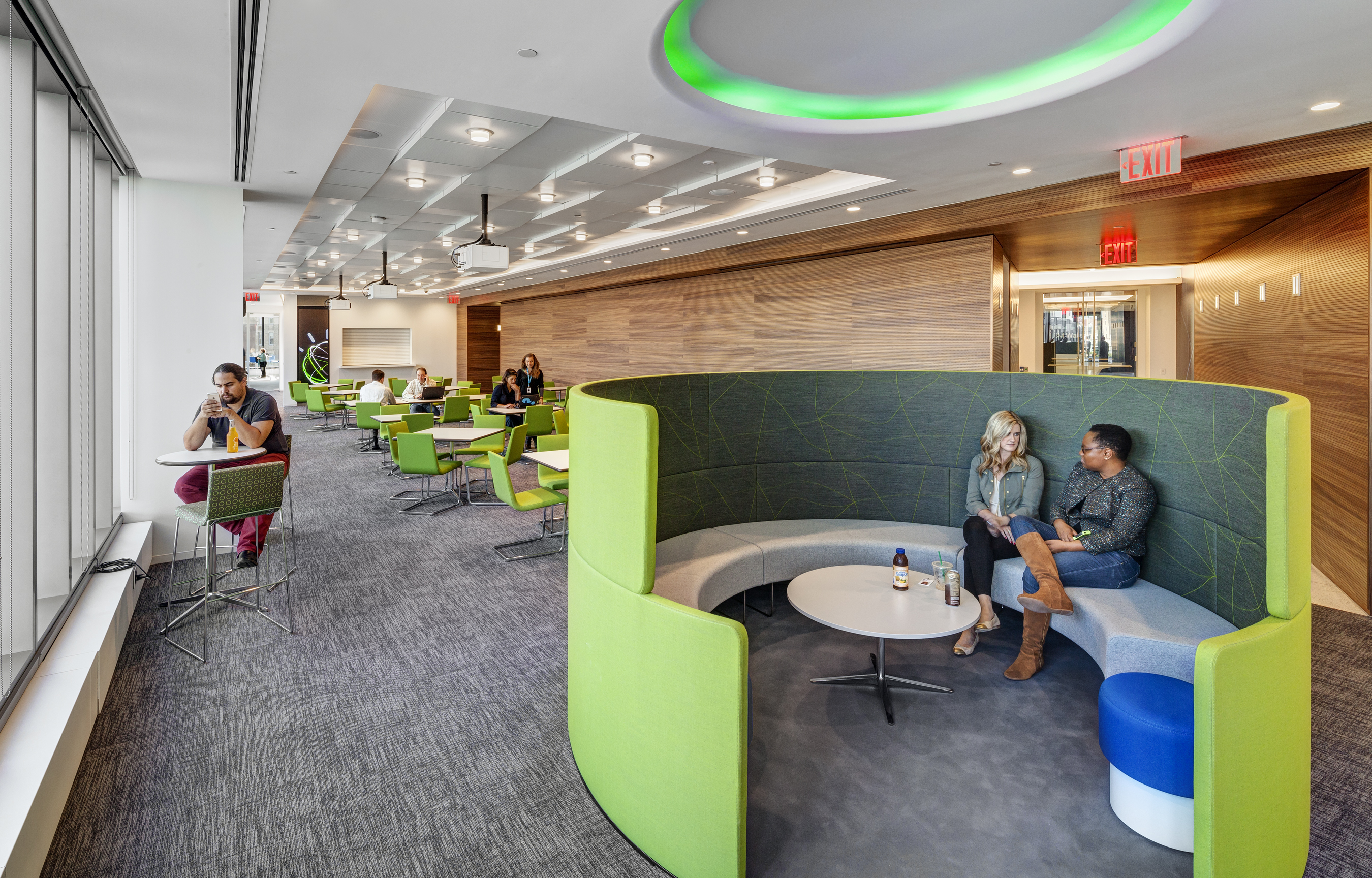 The Switzer Group was retained by IBM to design Watson’s new 150,000 SF home in Manhattan’s Silicon Alley. Transforming floors four through eight of Fumihiko Maki’s glass and steel structure at 51 Astor Place, The Switzer Group created an incubator for new applications of IBM’s breakthrough cognitive computing technology, and a design studio for next-generation programs, software and apps. The dedicated IBM Watson headquarters was conceived as a showcase for Watson’s capabilities, and an inspirational workspace for millennials and idea generators of all ages. This includes The Watson Client Interaction Center as well as offices, conference rooms, workstations and dining. The Client Interaction Center is where clients come to experience Watson and learn about its capabilities. The M&C labs on two of the floors provide solutions to clients - designing and solving problems for their customers. Half of the fifth floor is where Watson itself resides and is also where clients are brought to solution their problems with Watson.