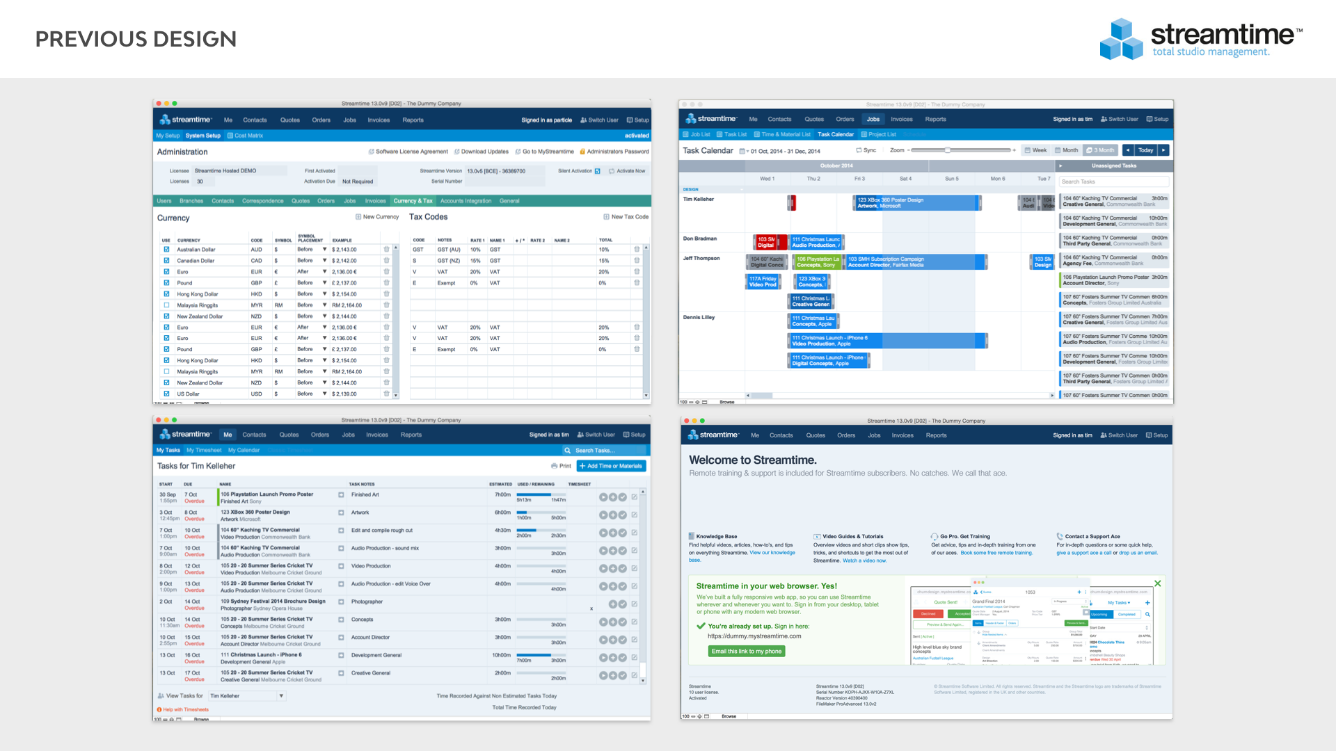That’s where the start of the journey with Streamtime began. It was the perfect brief. It didn’t give a list of demands, parameters, or constraints. It was simply a request for help. You see, Streamtime was software that needed to be installed and it was ageing by the day. It had suffered (like many other ‘mature’ software companies) from feature creep. Trying to satisfy requests for bespoke functionality, plug-ins and reporting had created a tool that was hard to maintain and build upon.