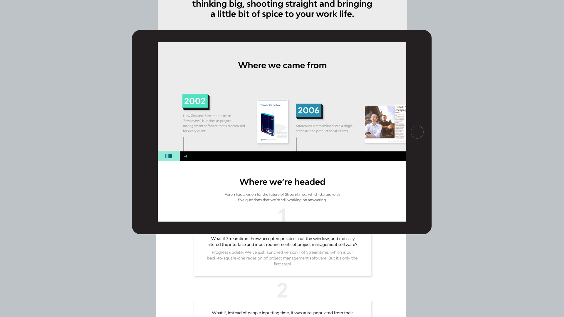 We designed and built a new site to market the new product. It brings the character to life, as he walks you through the new world of Streamtime and our quest to change project management forever. And scroll just far enough and you may discover an entirely new world – the timestream. http://streamtime.net/timestream Give it a go, and let us know what score you get!