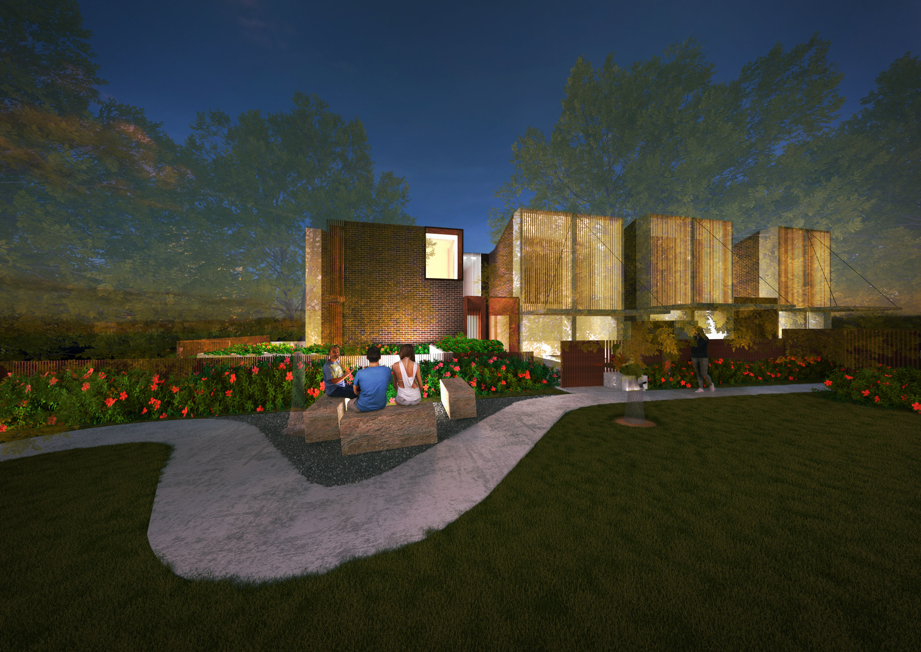 Market research indicates that humans well being is improved when there is a connected and present community available for people to interact. The external space between the new and historic portions of the site, the “cloister”, are tailored towards serendipitous encounters and interactions with place settings facilitating this interaction. A main path and “boulevard” of trees provides the backdrop to the external space.