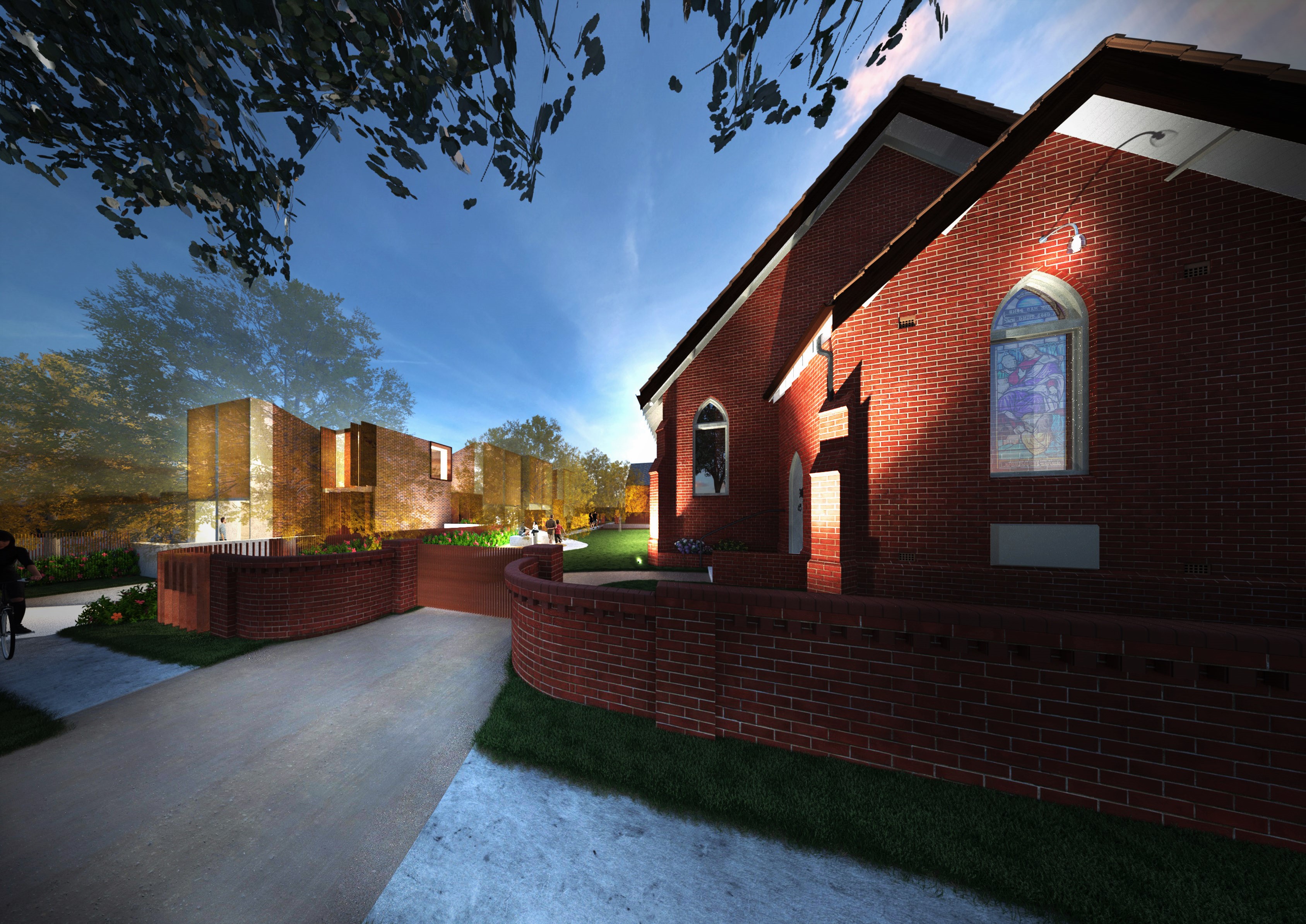 The brief required the reuse of as much of the existing structure as possible to maintain the authenticity of the site and uniqueness of the existing Church. Within the existing Church is one dwelling and two other dwellings located within the original supporting buildings (Church Hall/ Church Sacristy). Minor adjustments to structures and façades as required to create dwellings that meet contemporary standards