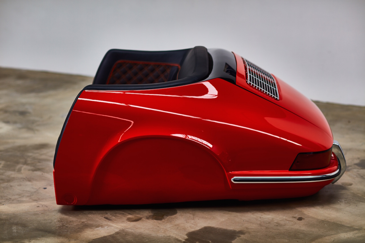 For the 901 Carfa, we used the iconic 911 Porsche Targa as a basis for the design, combining its classic body lines with a deluxe sofa.