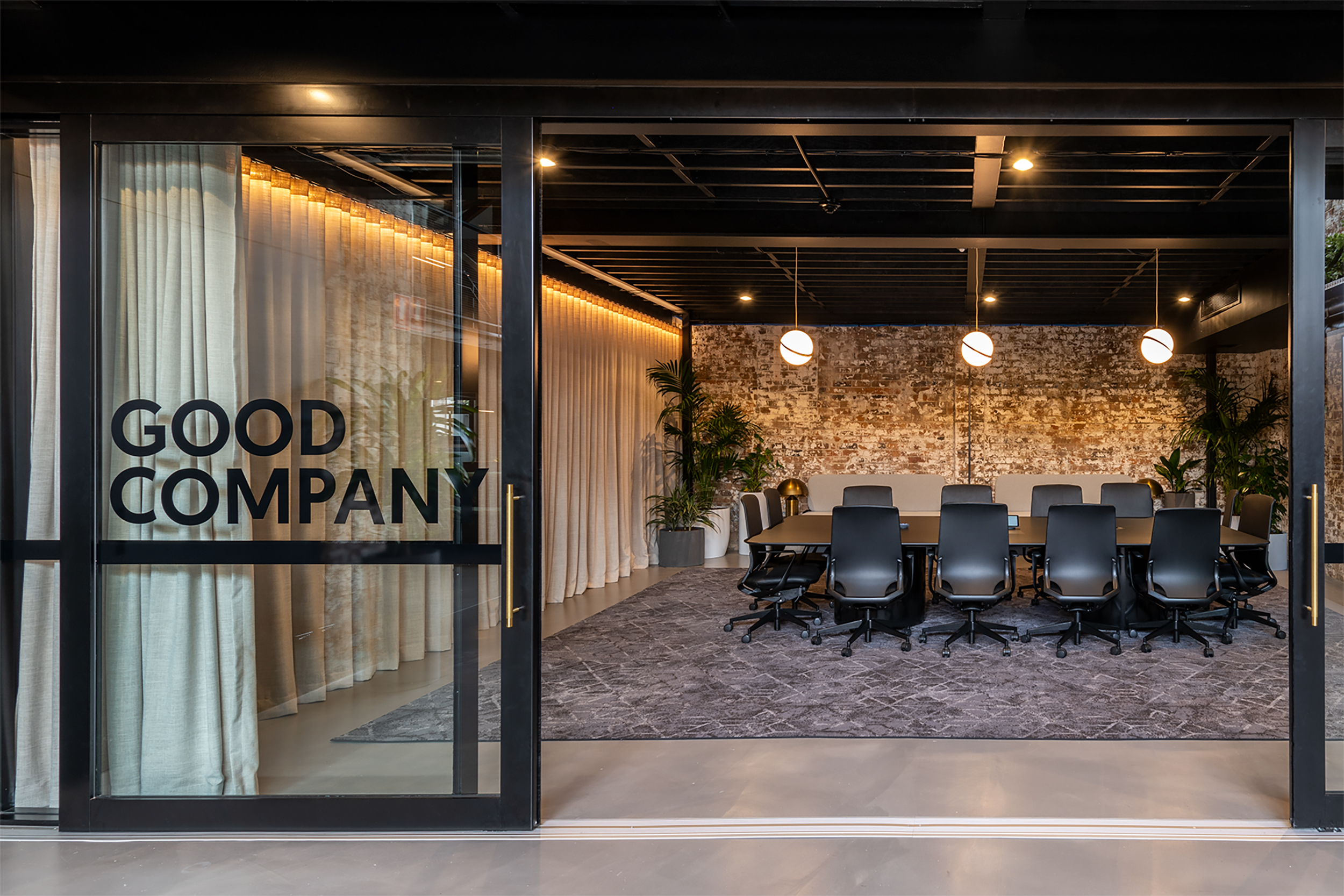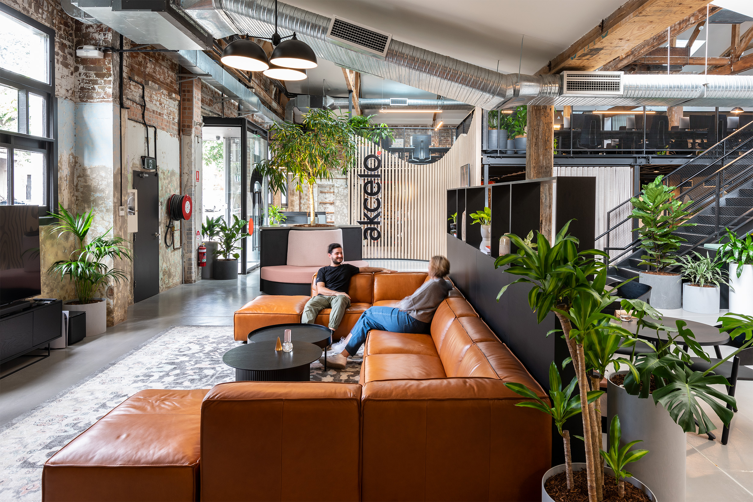 Akcelo, an award-winning advertising agency, were making a mark, delivering exceptional campaigns for companies like Netflix, TikTok and Tinder. Within just two years of launching, Akcelo quickly grew to a team of seventy-five staff. Soon enough, the agency was ready to vacate their co-working environments and engaged Cachet Group to design and construct their first dedicated Sydney studio - a space designed to further ignite the high performance, collaborative culture Akcelo’s worked so hard to build. Built in 1913, Akcelo’s new Sydney office was once a toy manufacturing warehouse. The heritage building retains much of its historic charm, including features such as the A-frame trusses and brickwork. Whilst the upper mezzanine was dedicated to work desks and refitted with a lift, the ground floor paid homage to the buildings’ original purpose, a place for creation. Scattered throughout this floor are lounges, booths, touch-down points and a large breakout island bar all dedicated to encouraging staff and clients to collaborate, share and create remarkable brand experiences. At the heart of the project is the stunning vertical timber wave that curves and undulates, leading the eye from the illuminated logo to a screen showcasing Akcelo’s work. Akcelo’s new office delivers an amazing physical experience & tactile representation of the brand with 1000SqM of custom space, designed from the ground up. Every inch has been curated for their people, their capability, their clients, their rituals and working models.