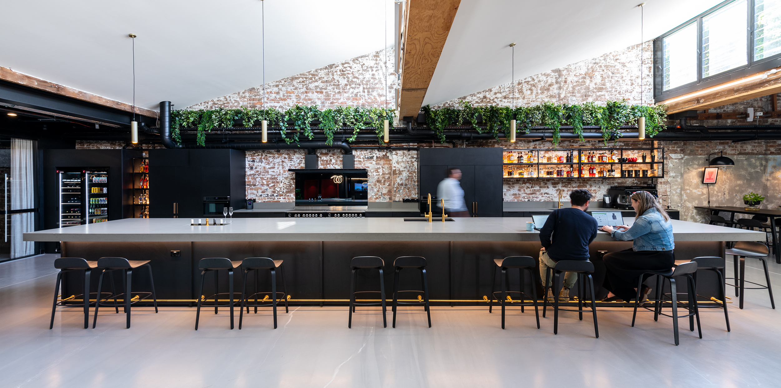 Akcelo’s way of work is pioneering the new generation of work culture where lines between a client and staff environment is blurred. The Sydney office is an ode to this collaborative culture and the remarkable outcomes this approach brings. To support Akcelo’s endeavours in this, Cachet weaved innovative features to encourage client and staff co-creation. This included; • integrating power into the eight-metre long kitchen island so that it can be used as a touch-down zone • a full catering kitchen with two free-standing ovens for client driven events • a fully-flexible working environment with connectivity between all locations • and creating a biophilic response to the brief through incorporating mass planting, a live full-size tree, a tropical zone under the stairs and high-level planting above the kitchen. These touches of greenery along with atmospheric music and a piped scent through the air-conditioning brings a softness and feeling of luxury to the once industrial space, encouraging space use by all.