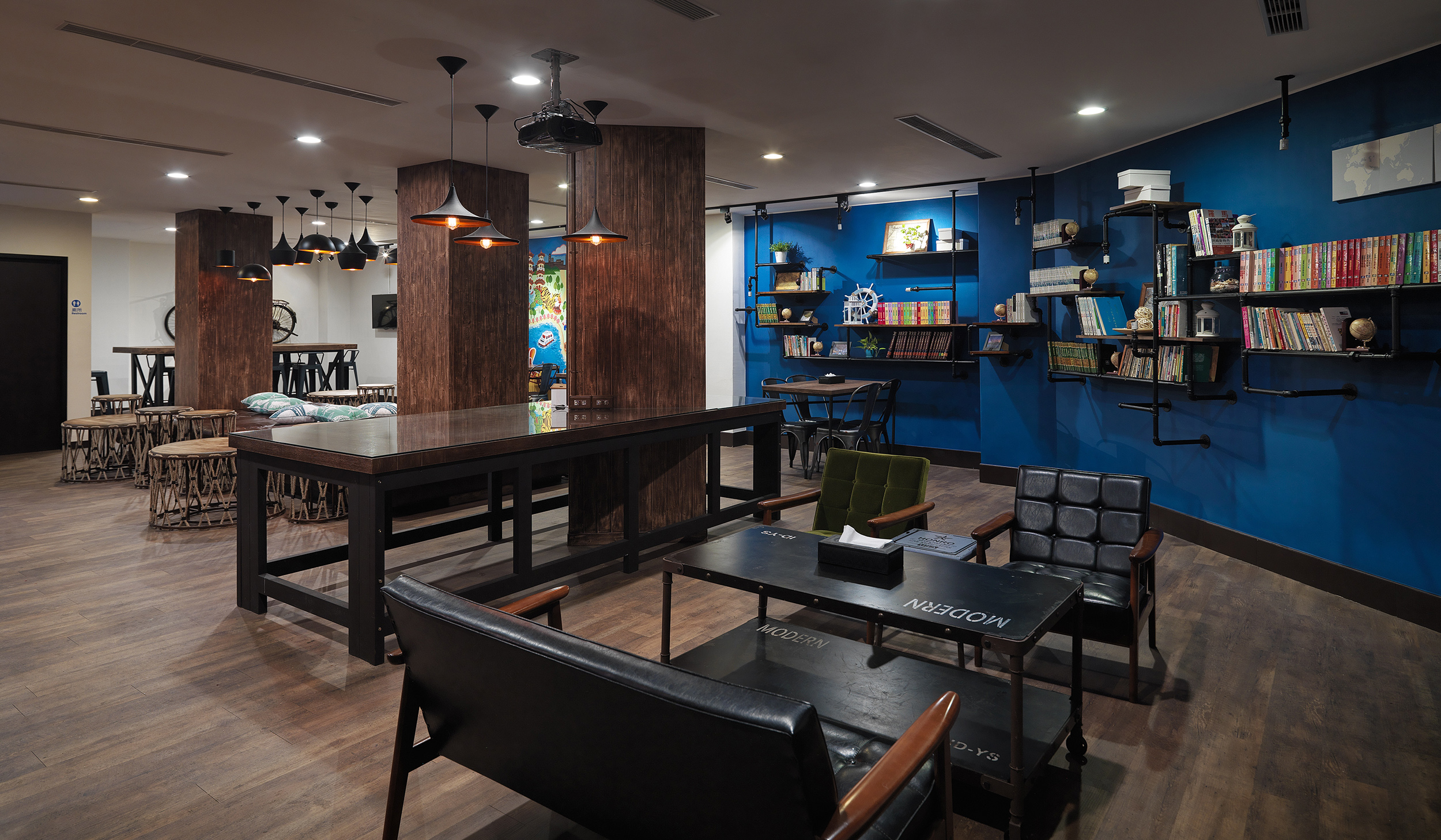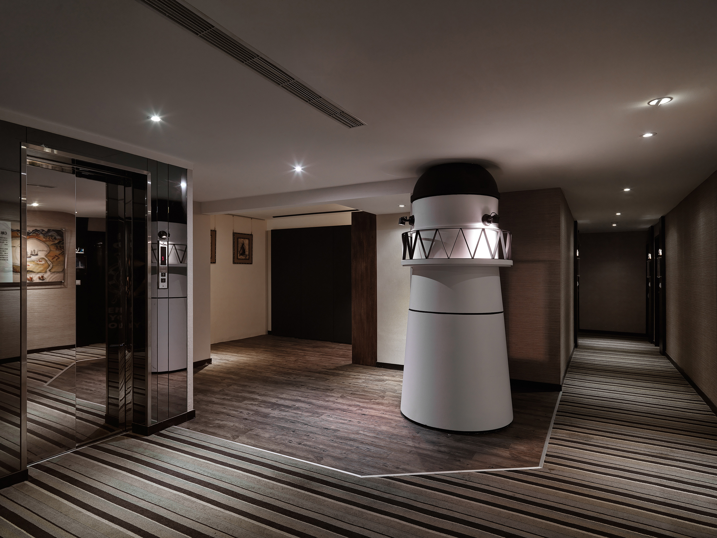 “Traveling is to adventure what accommodation is to achievement,” a quotation being part of the design plan in this hotel. In the study room, the blue walls and bookshelves made of water pipes show unlimited interactions among people, and reserve extra space for exhibition. Outside the elevator, the soft striped carpet presents the direction leading people to bedrooms. The design style composed of the sailing adventure spirit unfolds the journey of happiness.