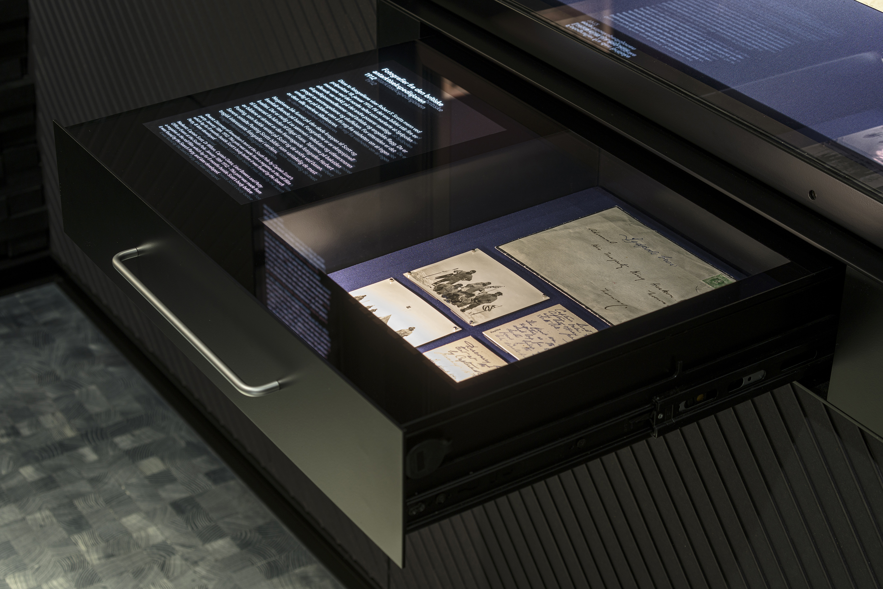 The objects selected for Opplyst tell of great breakthroughs, creative masterpieces and crucial events that shaped the country’s capacity for expression and sense of nationhood. They range from a 12th-century psalter and Magnus Lagabotes Landslov, the Norwegian equivalent of the Magna Carta, to an early example of a chain letter, known as a ‘letter from heaven’, a Grieg piano concerto and a letter from the South Pole by explorer Roald Amundsen, along with censored fragments from one of the earliest Norwegian silent movies made in Norway. Reminders of darker moments in the country’s history are included too, including a photo negative documenting the deportation of Norwegian Jews to Auschwitz in 1942. The library did all its own object-sourcing from its vast archive, with Nissen Richards Studio involved in the final consultation stages of the process, as well as in locating of the objects within the space. Unusually, the brief was for all objects to be of equal standing and without hierarchy or chronology. The pacing of the room therefore was all about visitors finding their own paths through. This would also ensure flexibility for the longer-term. Adjacencies were considered at length, with some objects offering maximum contrast for added drama and interest, whilst others form subtle pairings. Discovering connective threads is therefore entirely dependent on the mindset and path of the individual visitor.