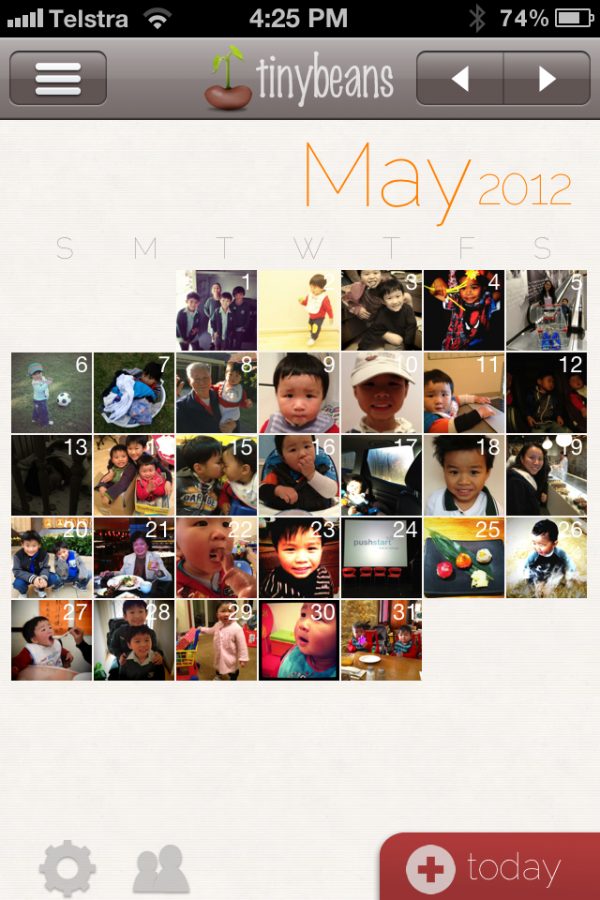 Finally, the other major design goal is that the journal has to look beautiful. By representing the daily photos in a calendar format, even seemingly mundane everyday photos come to life as they create a collage of the children's lives. The calendar truly embodies Tinybeans' tagline of "Watch your children grow".