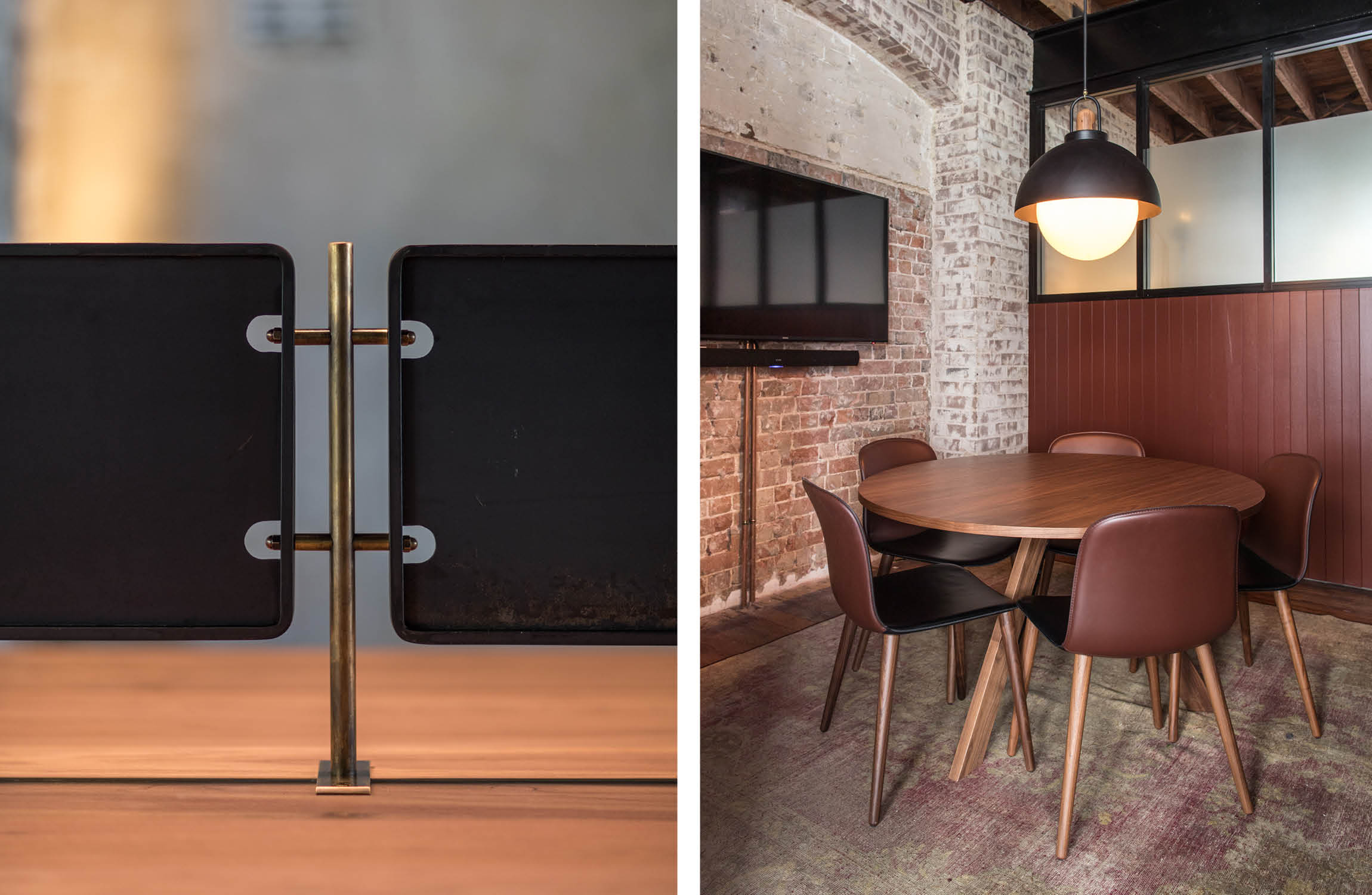 We reused many of the raw and old elements in the interior design features. Timber decking and metal cladding from the rooftop was reused for wall features internally including meeting rooms.